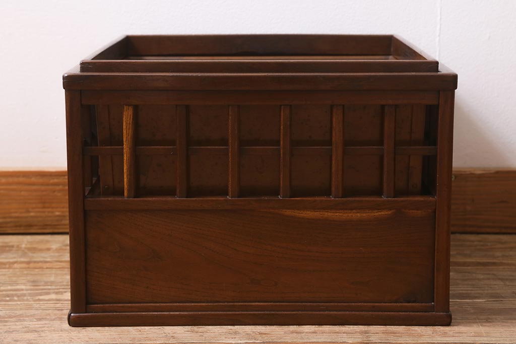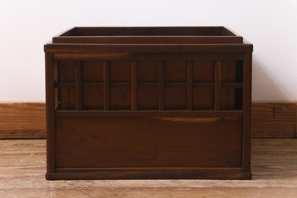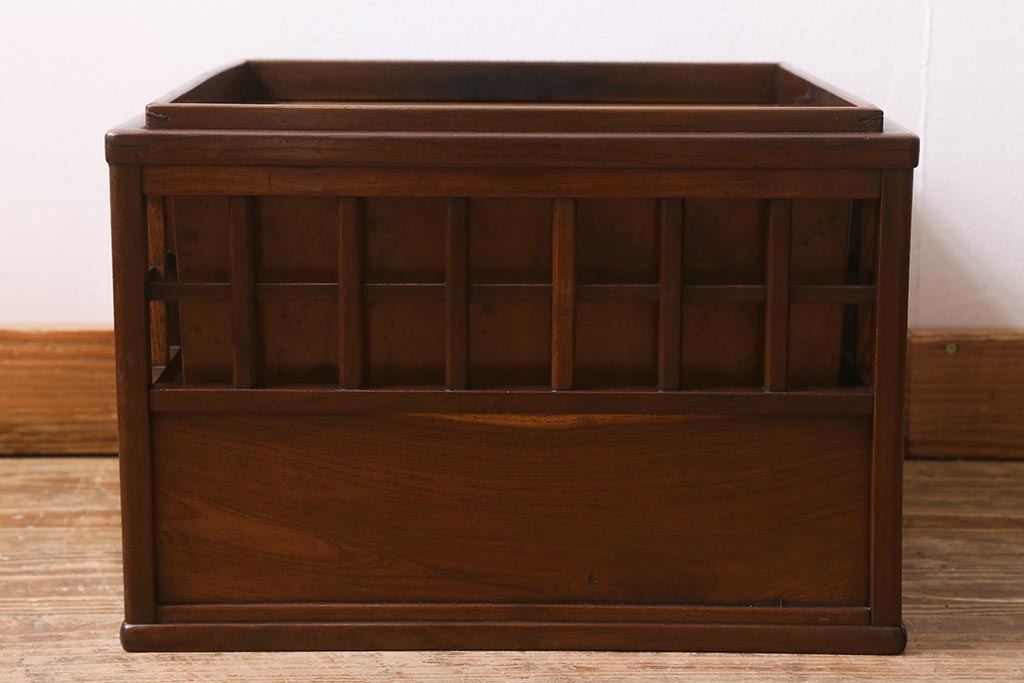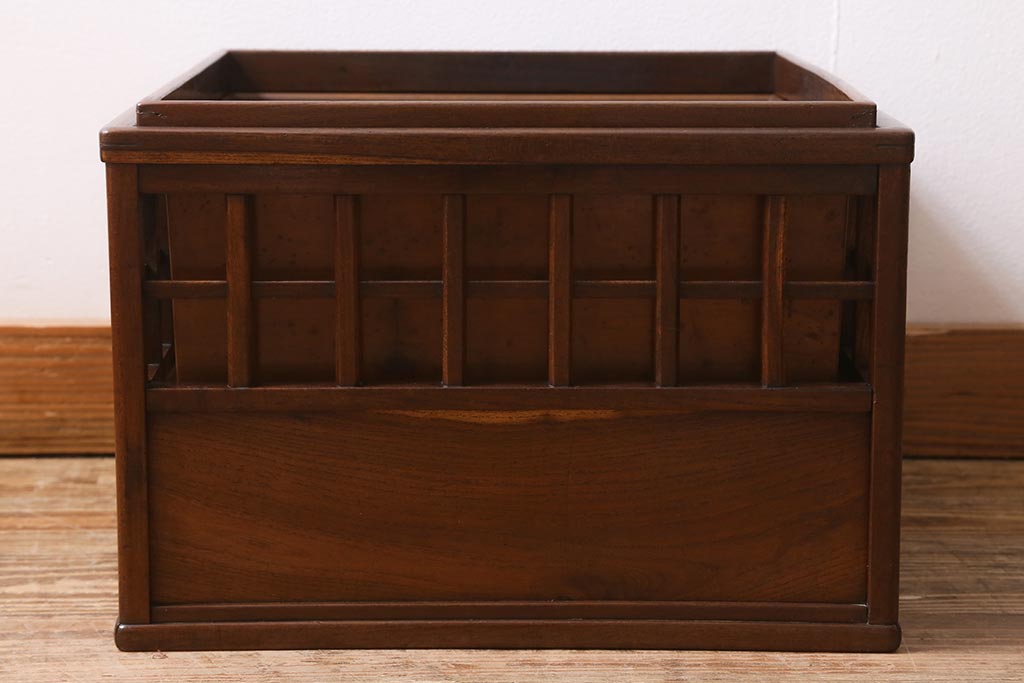 民芸家具 > アンティーク雑貨 昭和中期 工芸品 京都産 桑材 格子が目を惹く角火鉢(木製火鉢、箱火鉢)(R-040395)