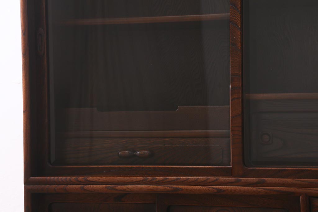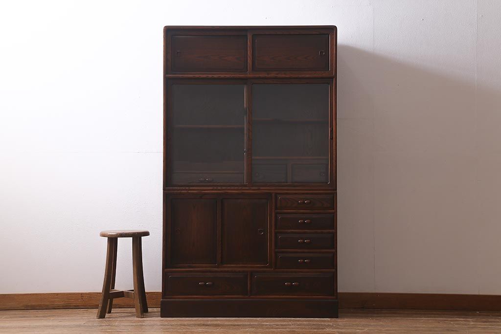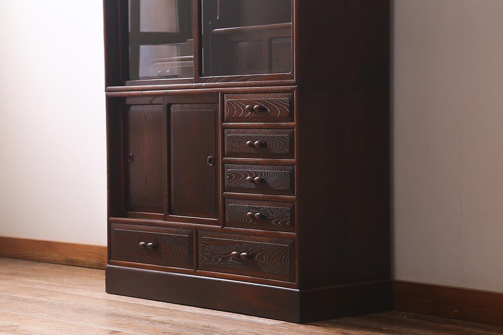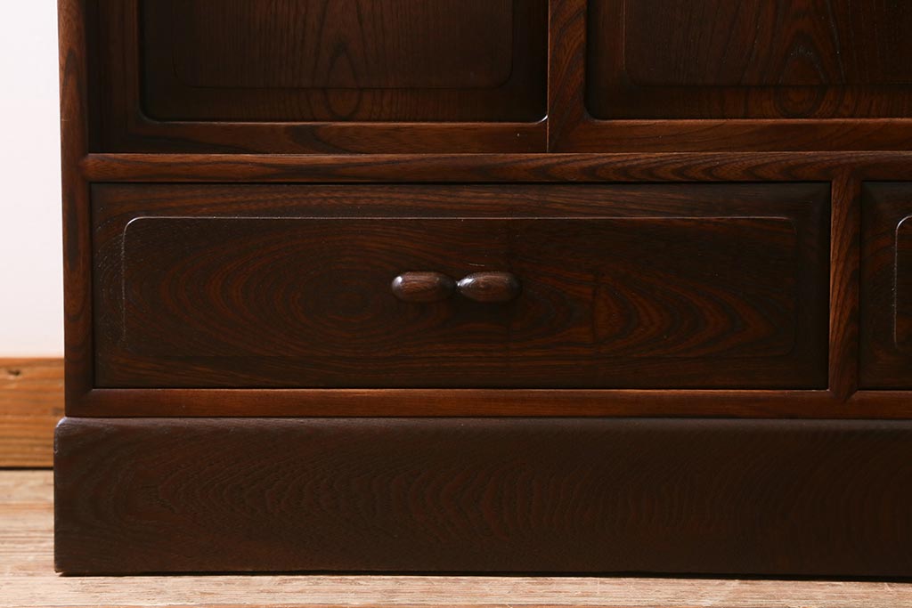 中古 高級品 工芸家具 ケヤキ材 漆塗り しっとりとした佇まいの上品な茶箪笥(定価48万円)(飾り棚、収納棚)(R-040295)