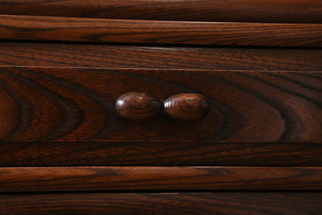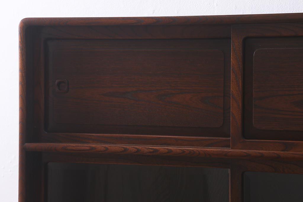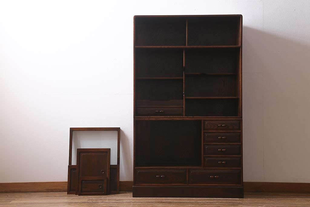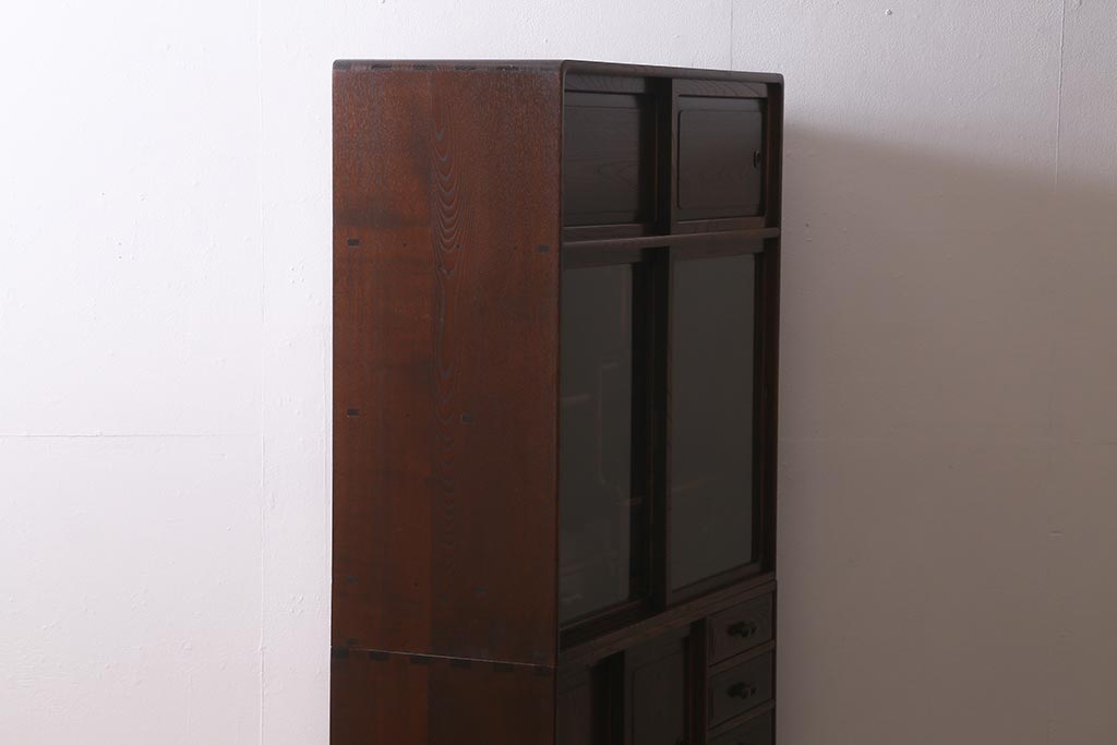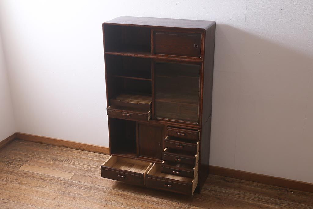 中古 高級品 工芸家具 ケヤキ材 漆塗り しっとりとした佇まいの上品な茶箪笥(定価48万円)(飾り棚、収納棚)(R-040295)