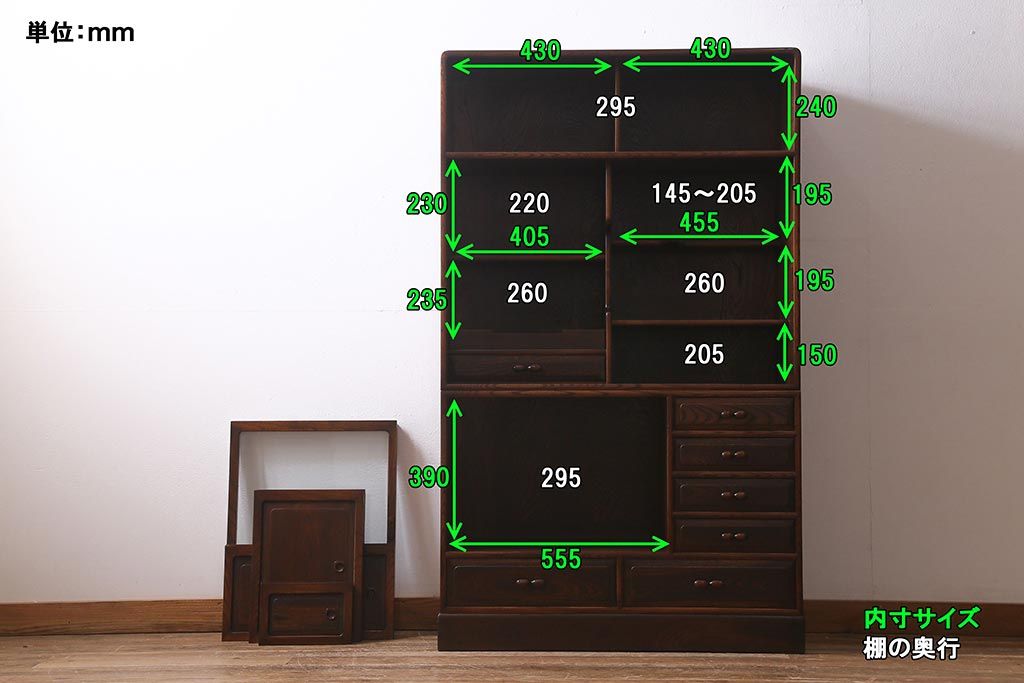 ラフジュ工房> 和箪笥> 茶箪笥・茶棚 > 中古 高級品 工芸家具 ケヤキ材 漆塗り しっとりとした佇まいの上品な茶箪笥(定価48万円)(飾り棚、収納棚)(R-040295)