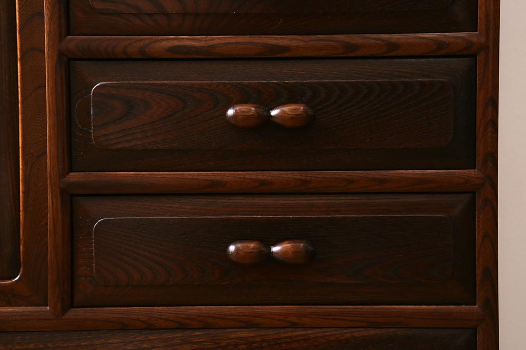 ラフジュ工房> 和箪笥 > 中古 高級品 工芸家具 ケヤキ材 漆塗り しっとりとした佇まいの上品な茶箪笥(定価48万円)(飾り棚、収納棚)(R-040295)