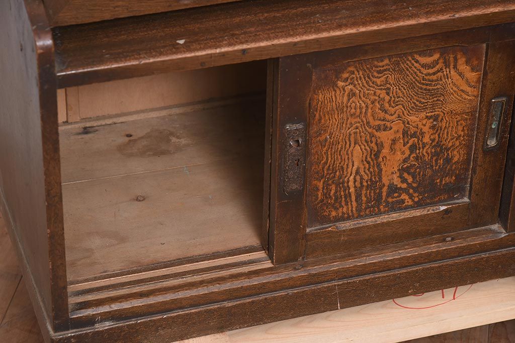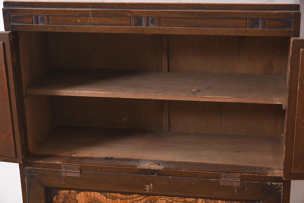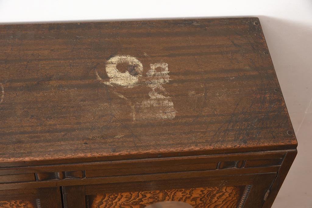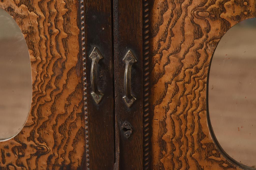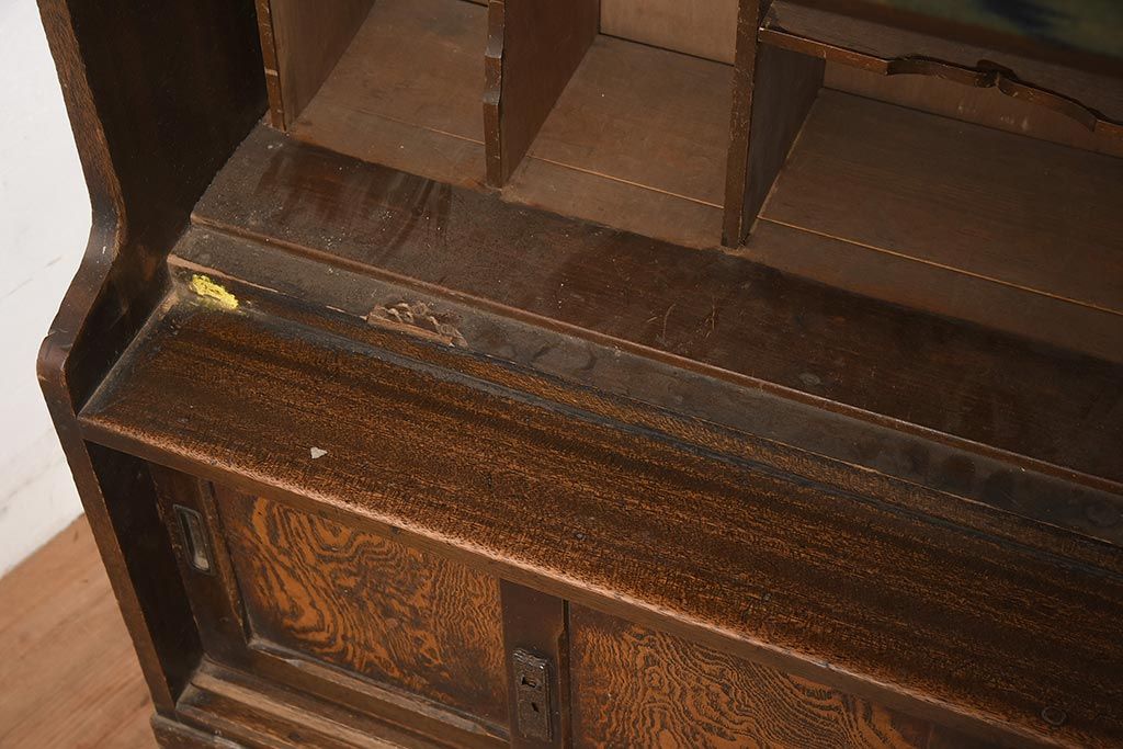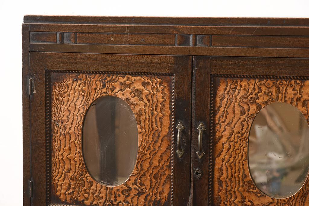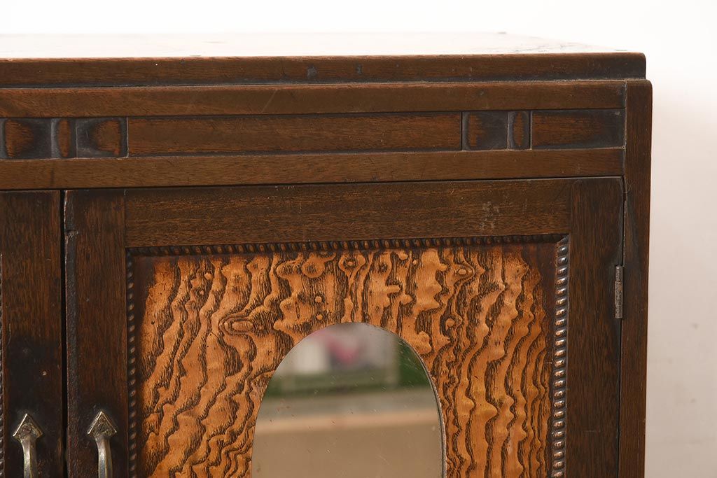 アンティーク家具 鏡付き レリーフなど凝った意匠がおしゃれなライティングビューロー(簿記机、ワークデスク)(R-040520)です。