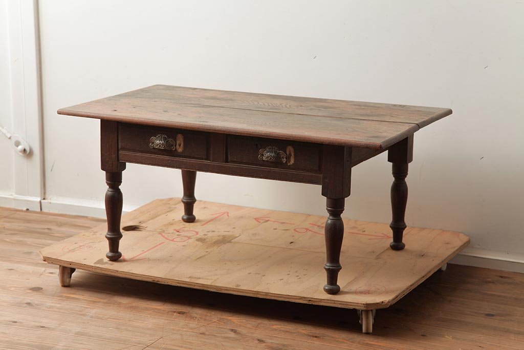 アンティーク家具 引き物加工の脚がシックな文机(ローテーブル、センターテーブル)(R-040154)です。