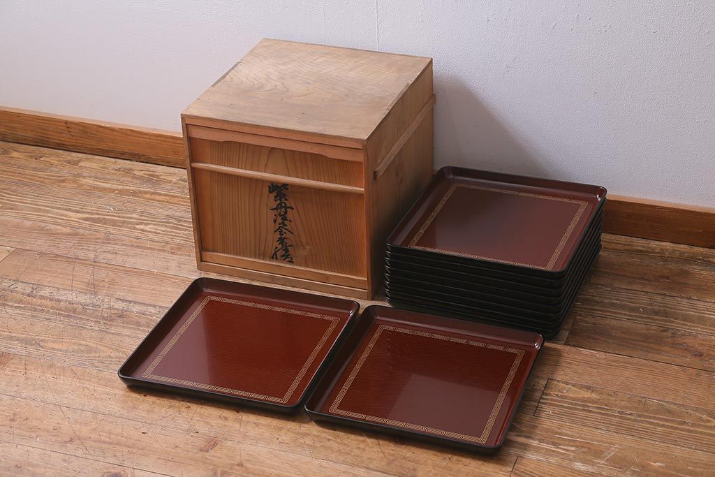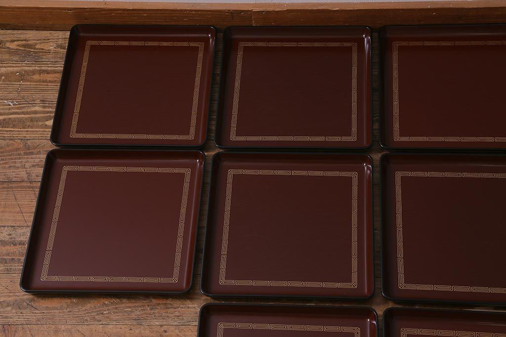 ラフジュ工房> 骨董・美術品> 骨董-漆器 > レトロ雑貨 輪島塗 柴丹塗会席膳10客(木製紫檀漆器)(R-040113)