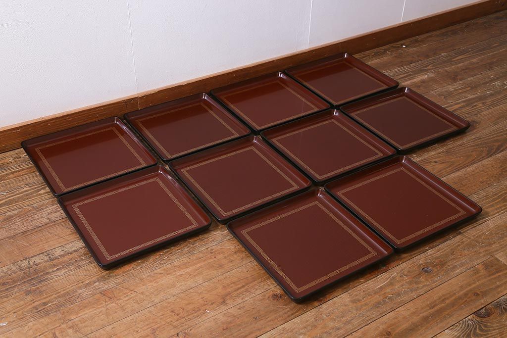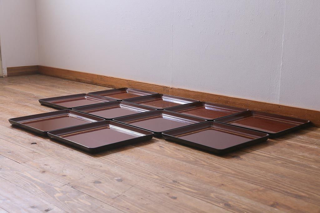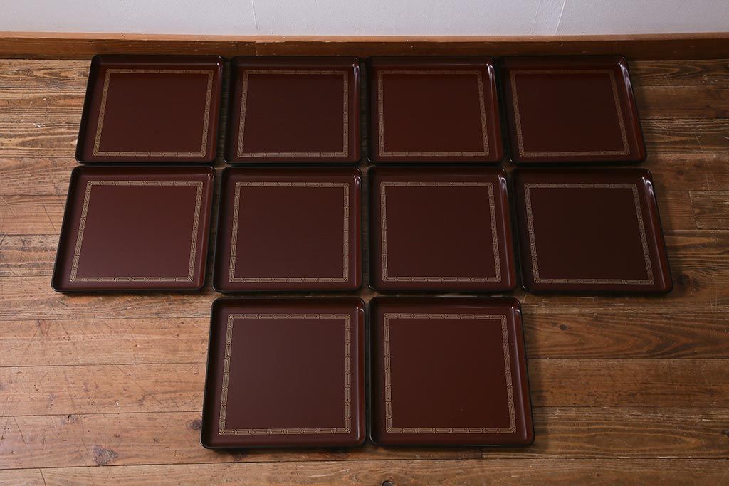 レトロ雑貨 輪島塗 柴丹塗会席膳10客(木製紫檀漆器)(R-040113)