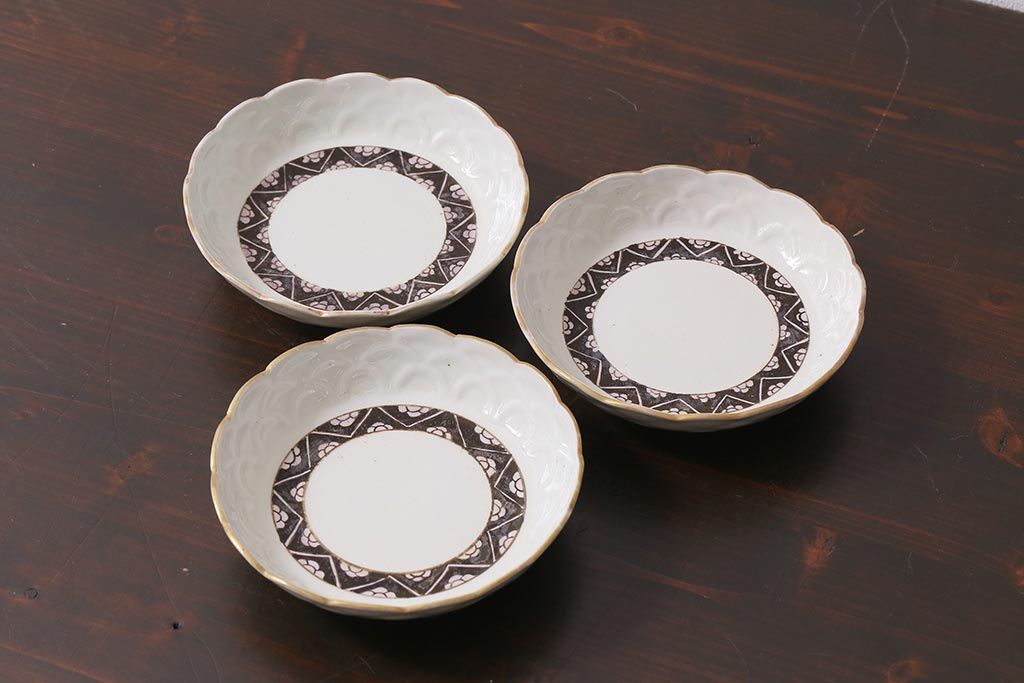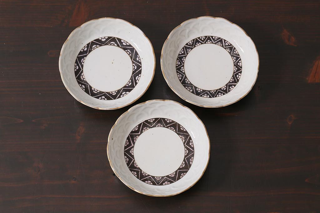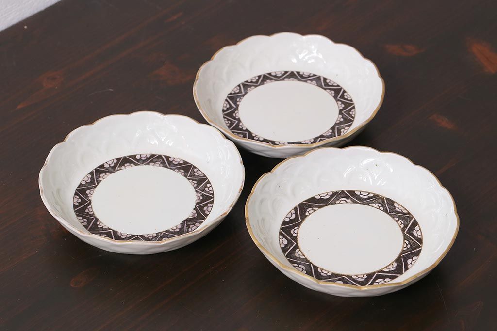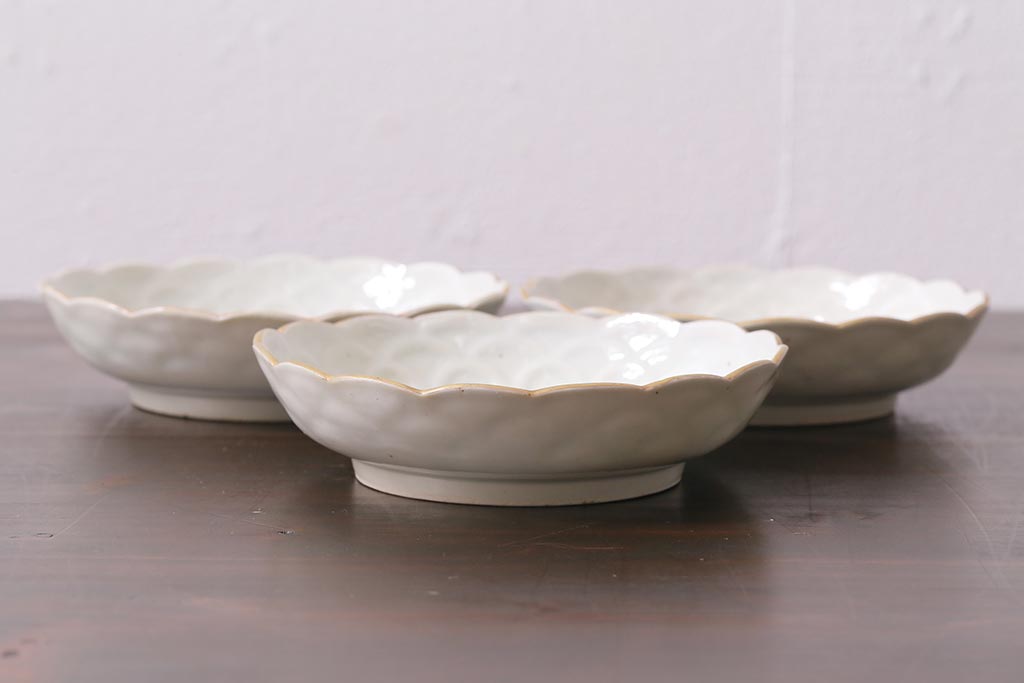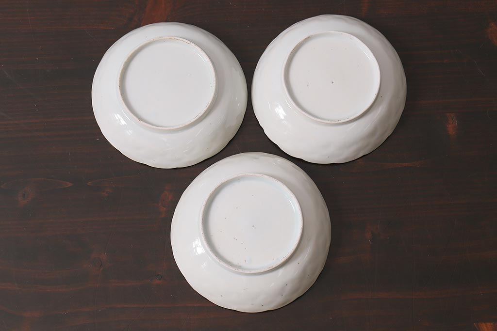 ラフジュ工房> 和食器・茶道具 > アンティーク雑貨 江戸明治期 白磁陽刻なます皿3枚セット(中皿、和食器)(R-040066)
