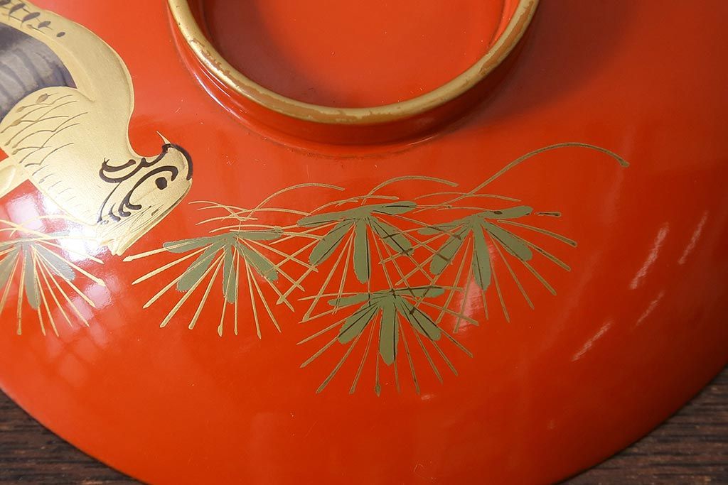 アンティーク雑貨 大正昭和初期 朱塗り 鷹蒔絵 お椀5客セット(木製漆器、和食器)(R-040556)
