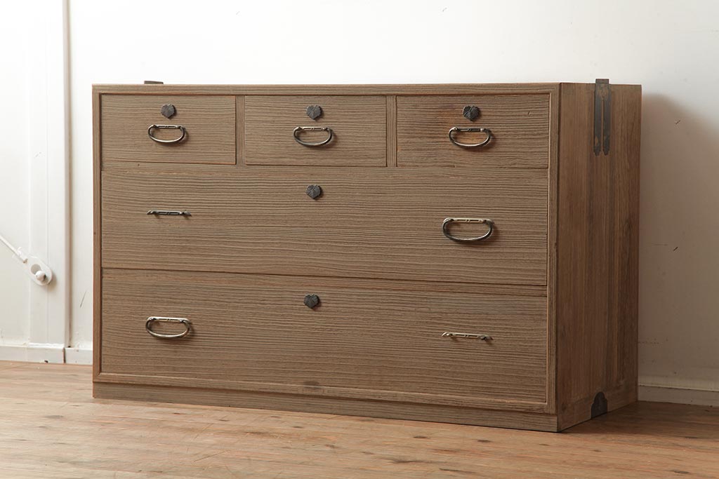 和箪笥> 衣装箪笥 > レトロ家具 昭和中期 桐材 引き出し5杯 シンプルな衣装箪笥(和タンス、ローチェスト、テレビ台、桐箪笥、桐たんす)(R-040538)