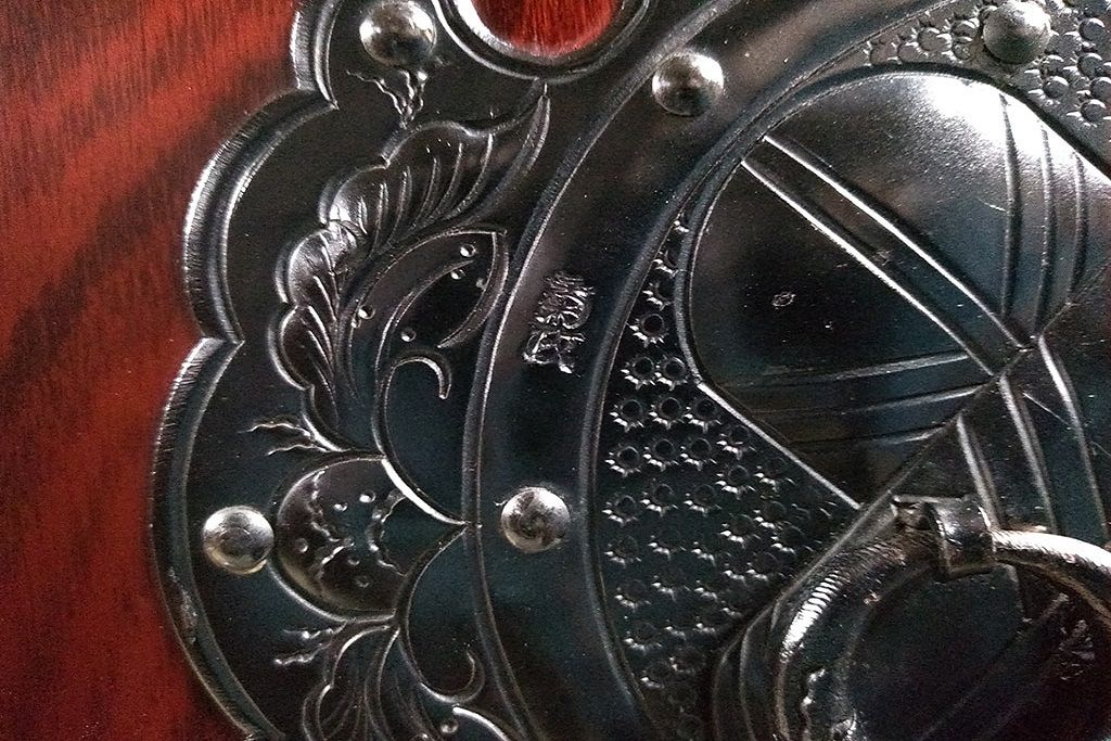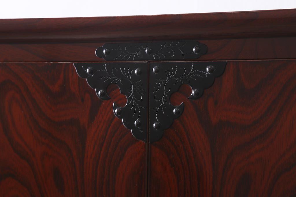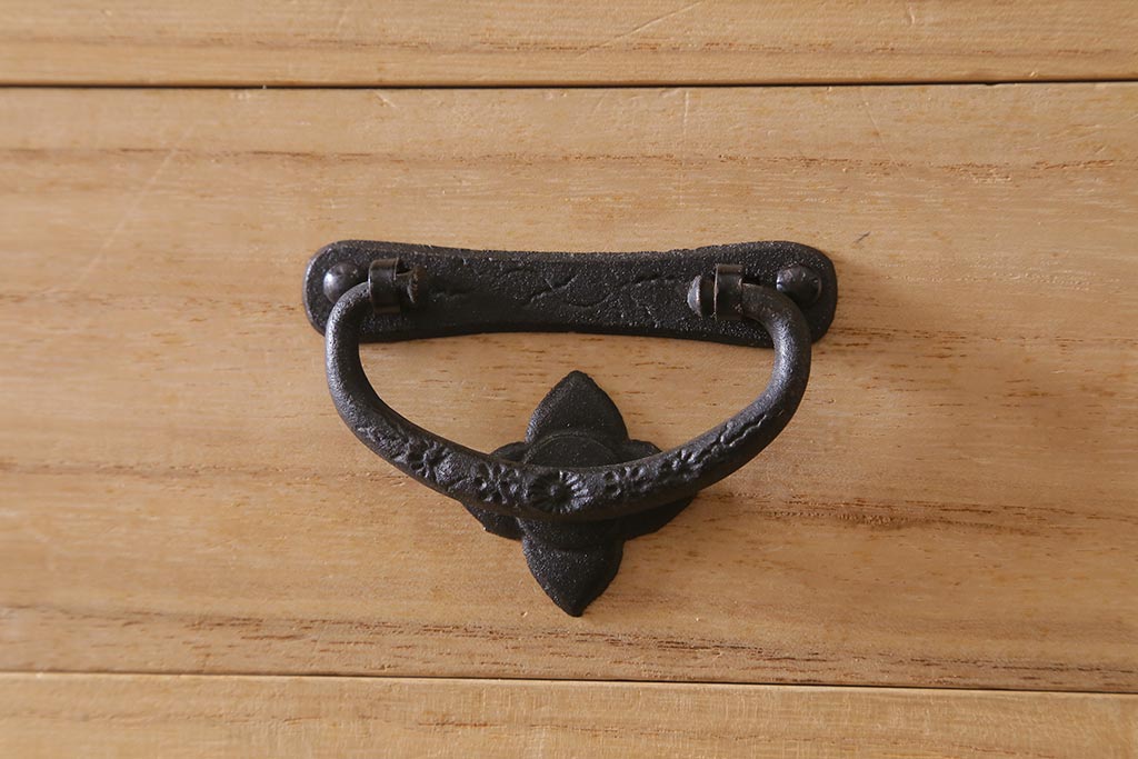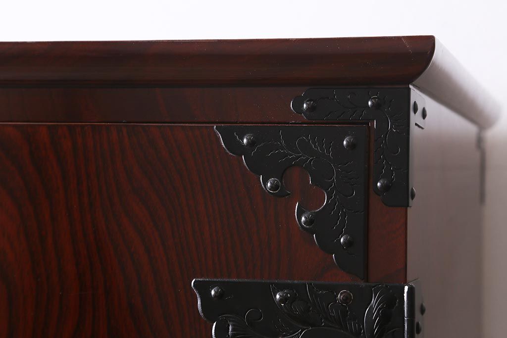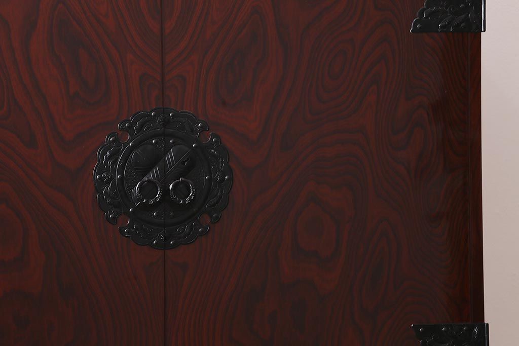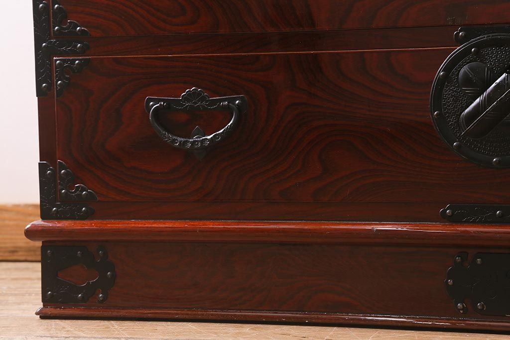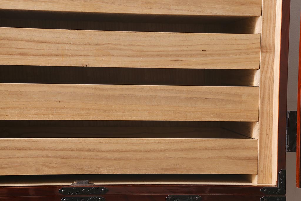 ラフジュ工房> 民芸家具 > ビンテージ家具 岩谷堂箪笥 銘入り「菊政」 手打ち金具・鷹の羽紋 木地呂塗り 衣装盆付き衣装箪笥(和タンス、ヴィンテージ)(R-040472)