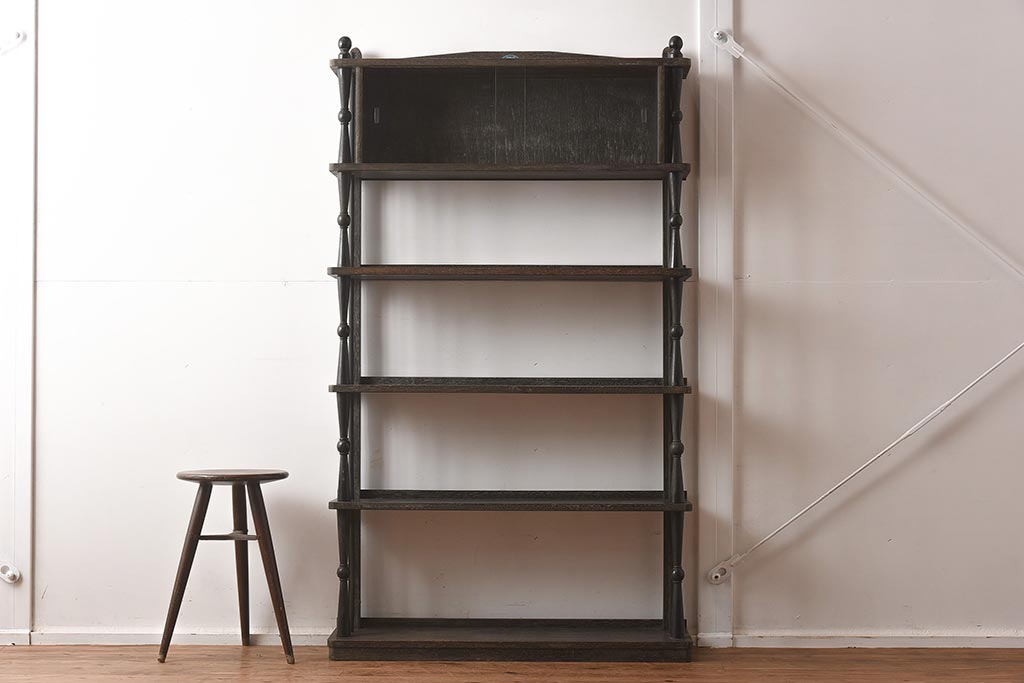 店舗什器 > アンティーク家具 和製アンティーク 昭和中期 激レア 凝ったデザインが目を引く本棚(ブックシェルフ、オープンラック、戸棚、飾り棚)(R-040620)