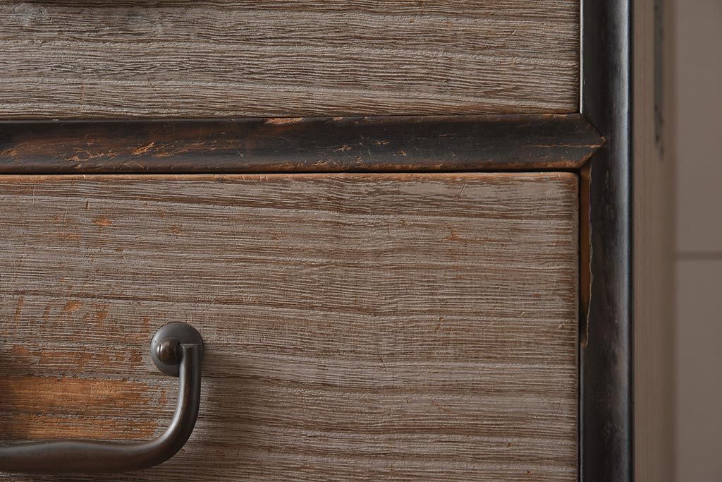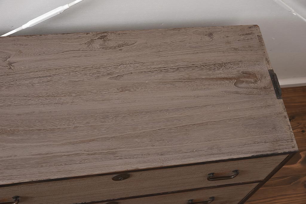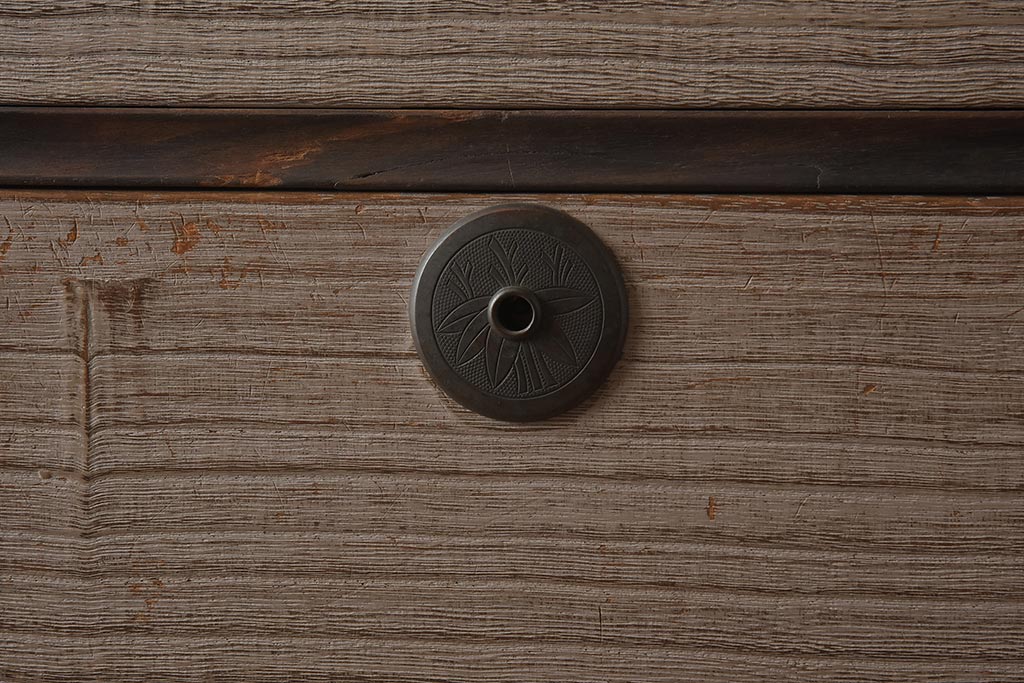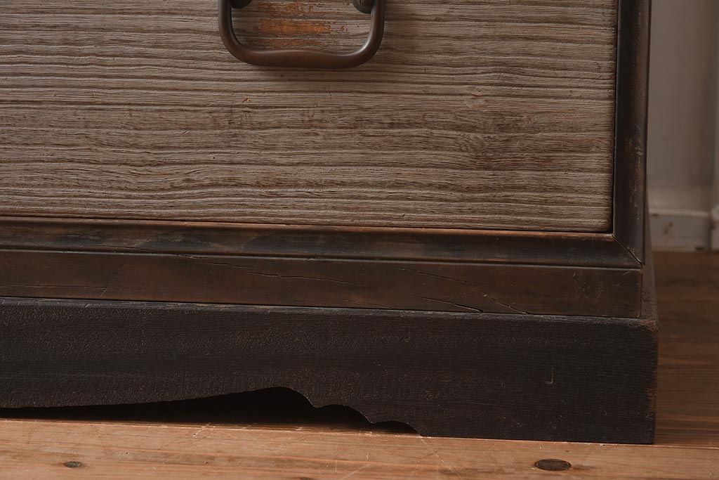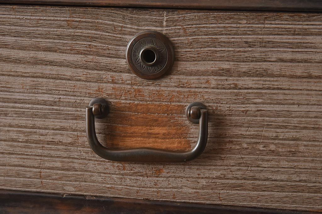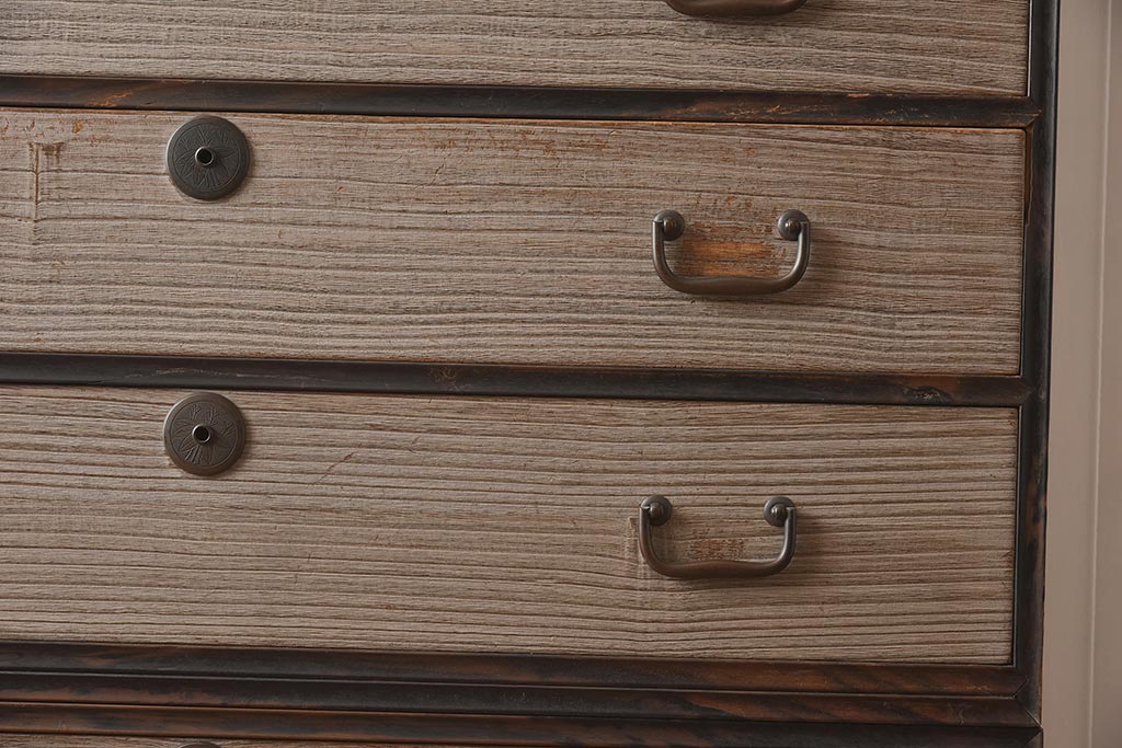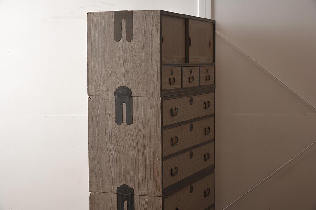 和箪笥 > 【簡易リペア限定品】アンティーク建具 和製アンティーク 昭和中期 総桐材 黒檀材 古い木肌が味わい深い上手物の3段重ね箪笥(衣装箪笥、引き出し、桐箪笥、桐たんす、和タンス、収納箪笥)(R-040622)
