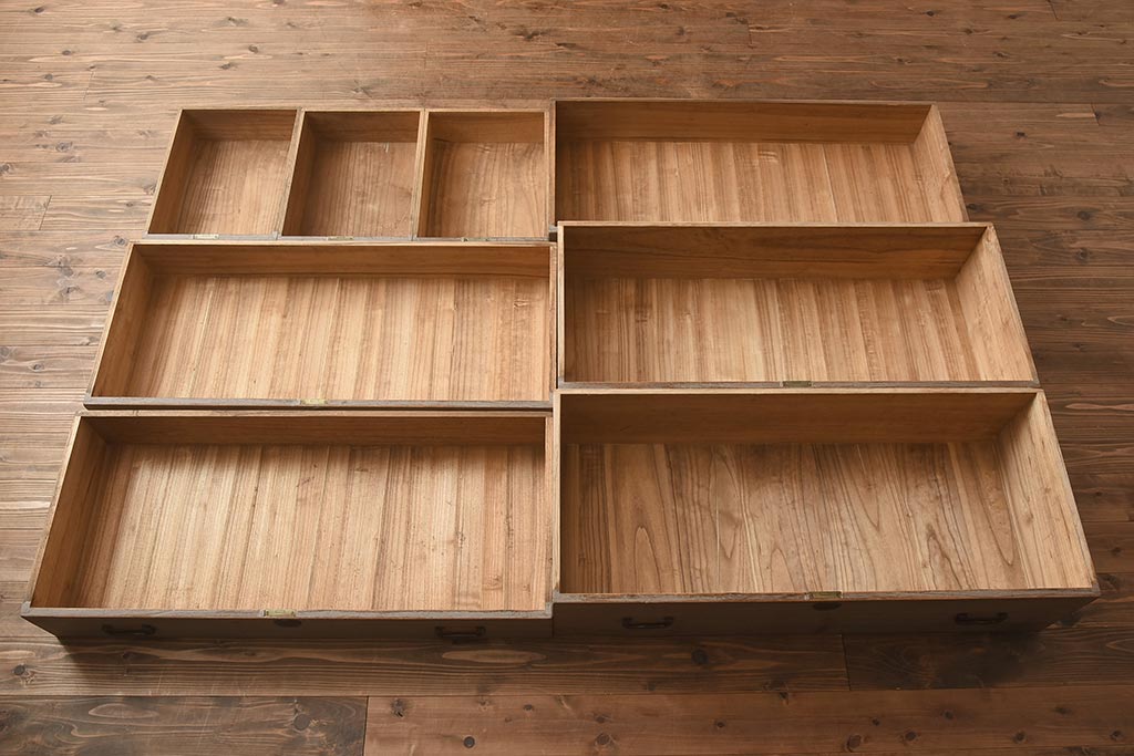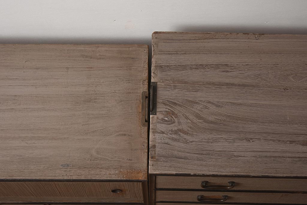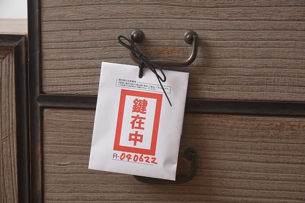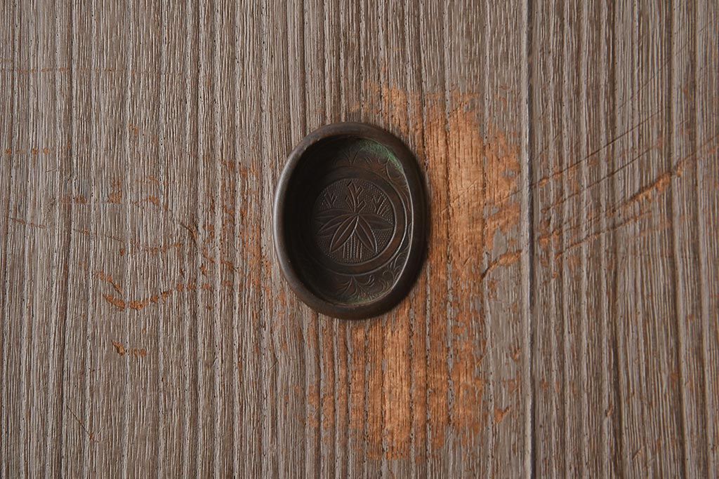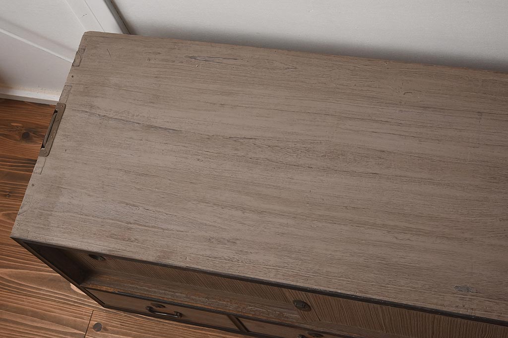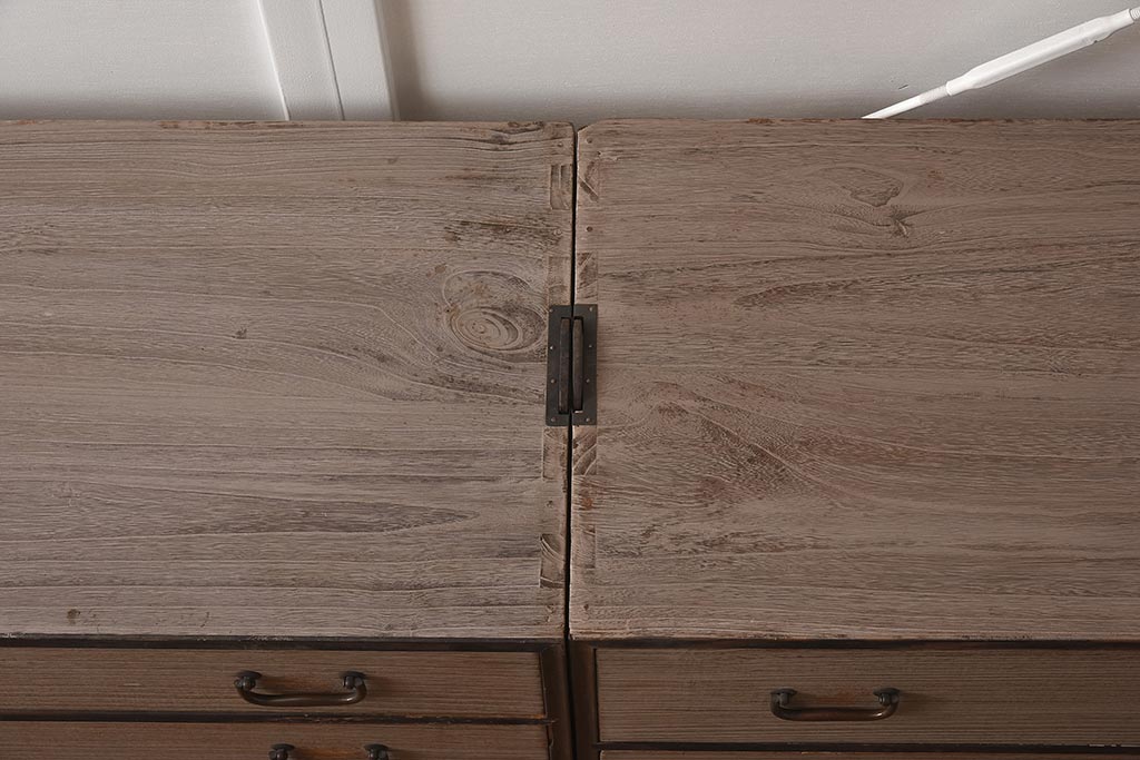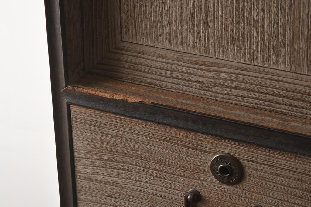和箪笥 > 【簡易リペア限定品】アンティーク建具 和製アンティーク 昭和中期 総桐材 黒檀材 古い木肌が味わい深い上手物の3段重ね箪笥(衣装箪笥、引き出し、桐箪笥、桐たんす、和タンス、収納箪笥)(R-040622)