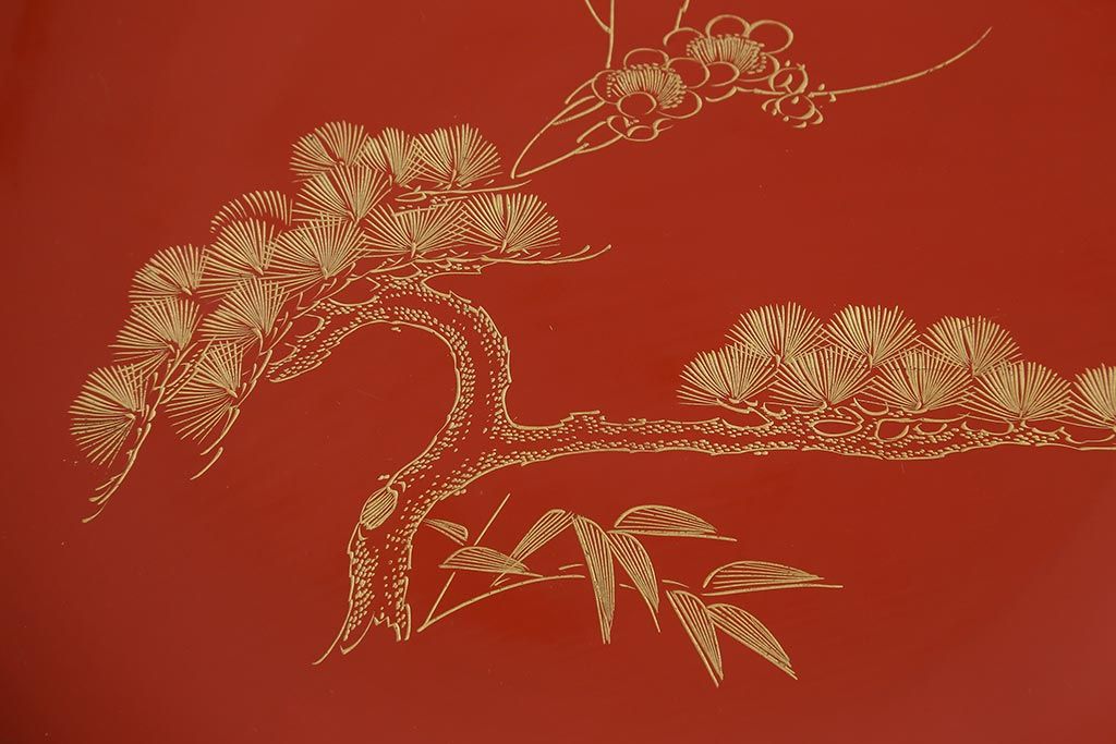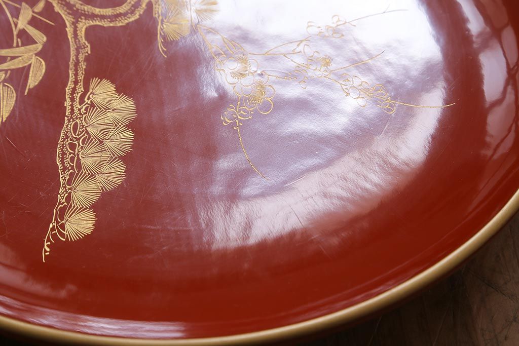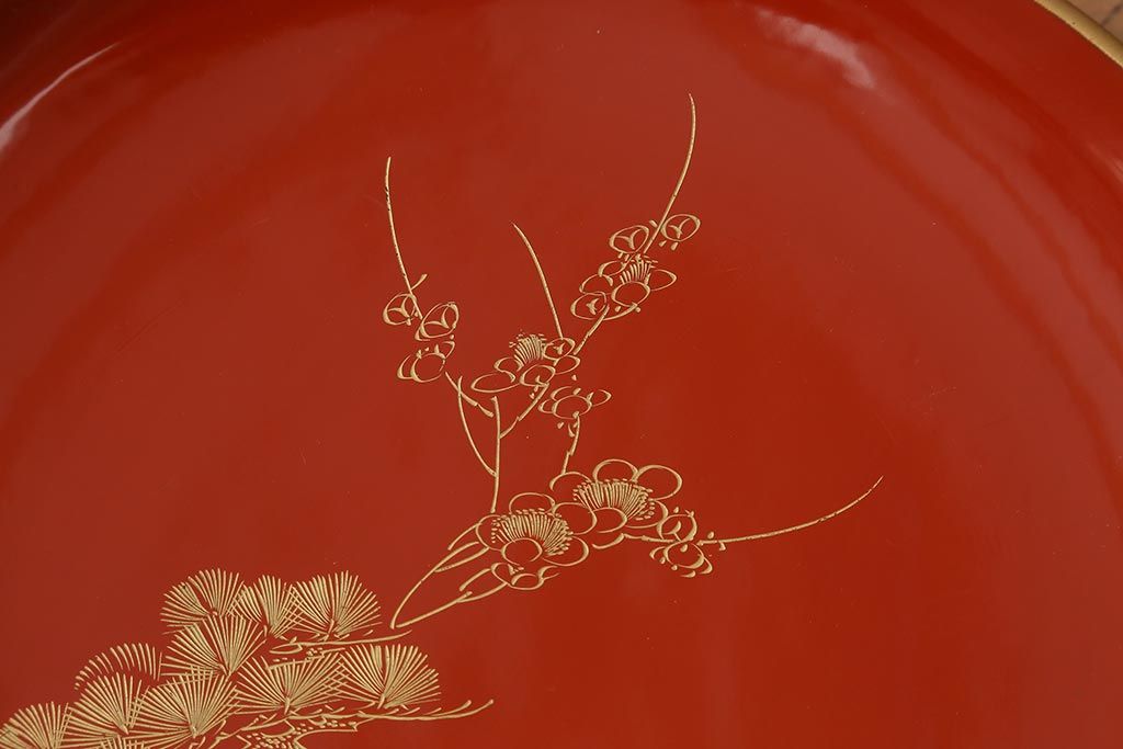 ラフジュ工房> 骨董・美術品> 骨董-漆器 > 古民具 大正昭和初期 輪島塗 松竹梅 沈金蒔絵菓子皿3枚セット(菓子盆、漆器、木製皿)(R-040510)