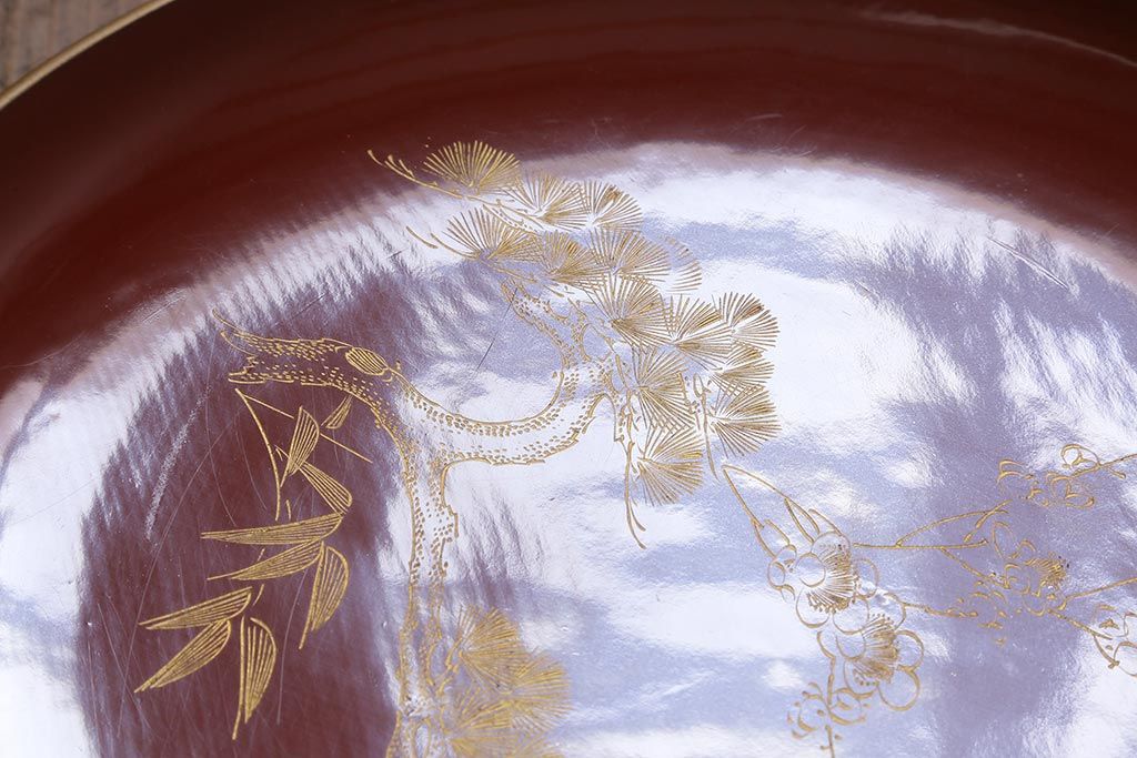 ラフジュ工房> 和食器・茶道具 > 古民具 大正昭和初期 輪島塗 松竹梅 沈金蒔絵菓子皿3枚セット(菓子盆、漆器、木製皿)(R-040510)