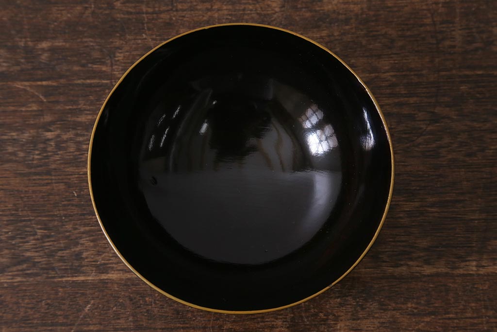 ラフジュ工房> 骨董・美術品> 骨董-漆器 > 古民具 大正昭和初期 黒漆鶴蒔絵蓋付木製椀10客セット(お椀、漆器)(R-040548)