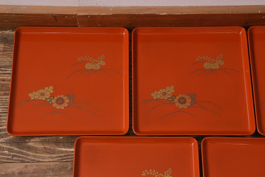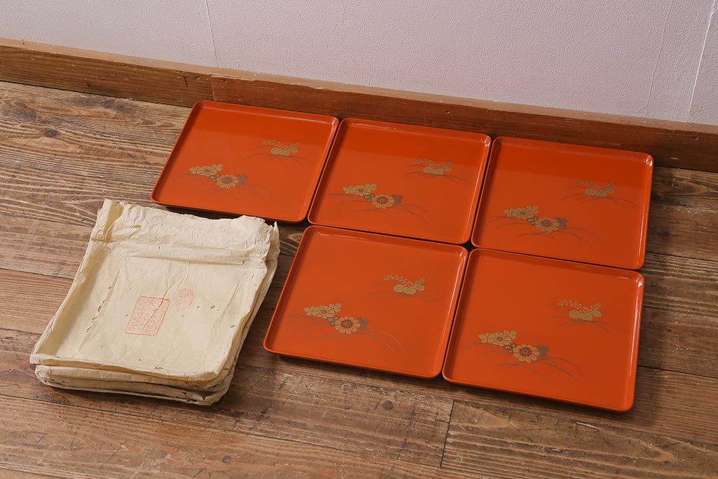 ラフジュ工房> 骨董・美術品 > アンティーク雑貨 古民具・骨董 明治〜大正期 輪島塗木製蒔絵膳5枚セット(漆器、お盆)(R-040119)