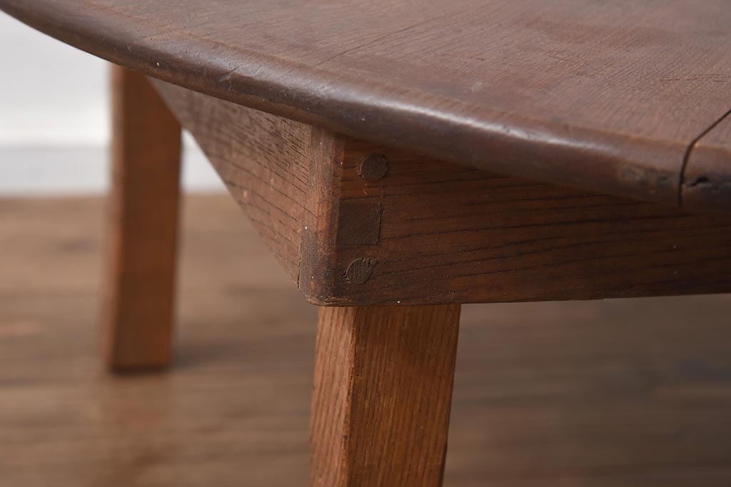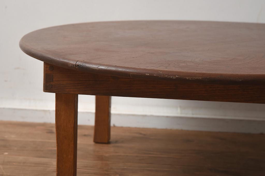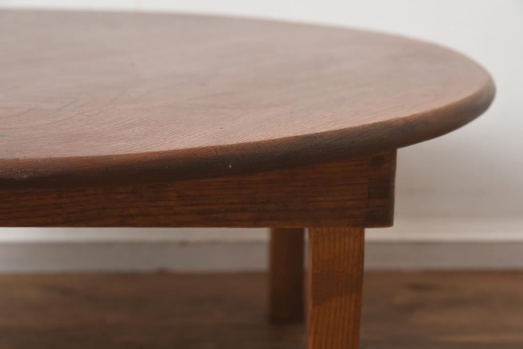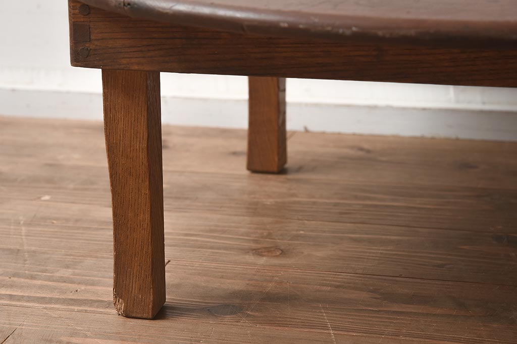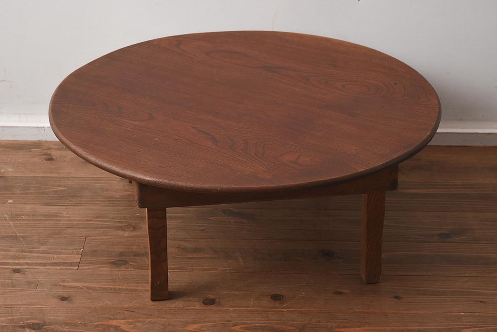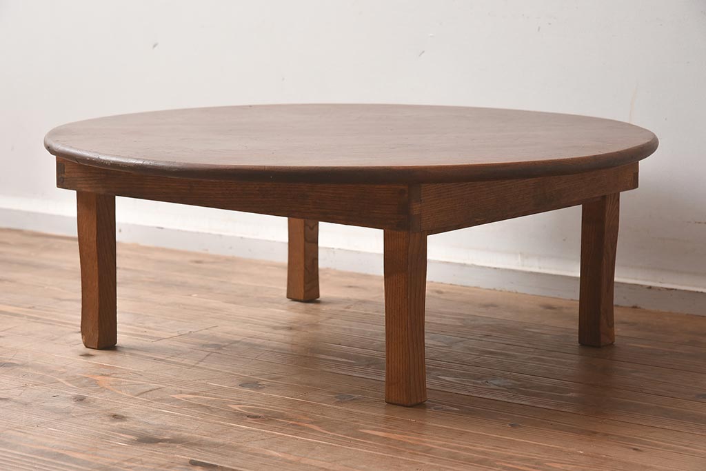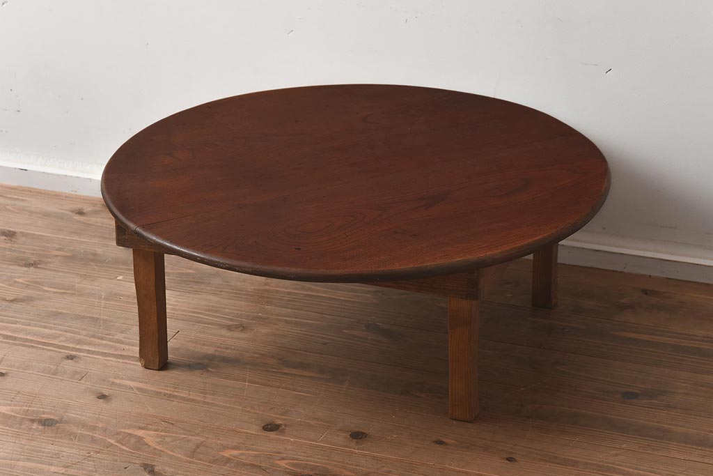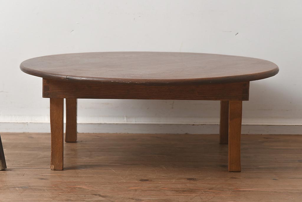 テーブル> 座卓 > レトロ家具 昭和初期 栓材 くっきりした木目が魅力の丸ちゃぶ台(折りたたみテーブル、座卓、ローテーブル)(R-040565)