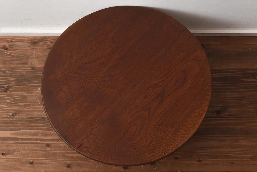 テーブル> おりたたみテーブル > レトロ家具 昭和初期 栓材 くっきりした木目が魅力の丸ちゃぶ台(折りたたみテーブル、座卓、ローテーブル)(R-040565)