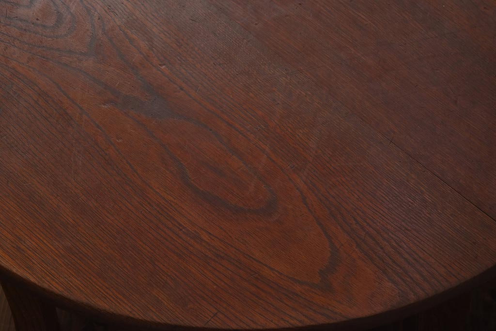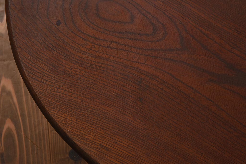 テーブル> ちゃぶ台 > レトロ家具 昭和初期 栓材 くっきりした木目が魅力の丸ちゃぶ台(折りたたみテーブル、座卓、ローテーブル)(R-040565)