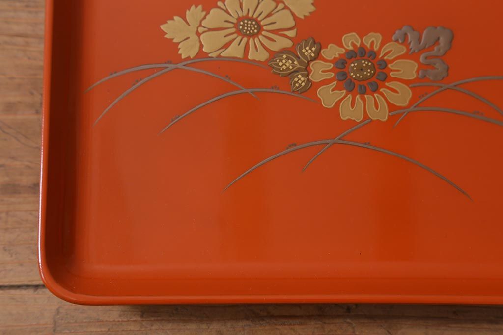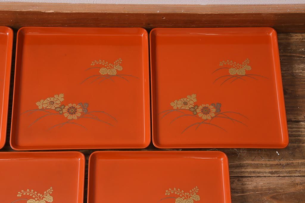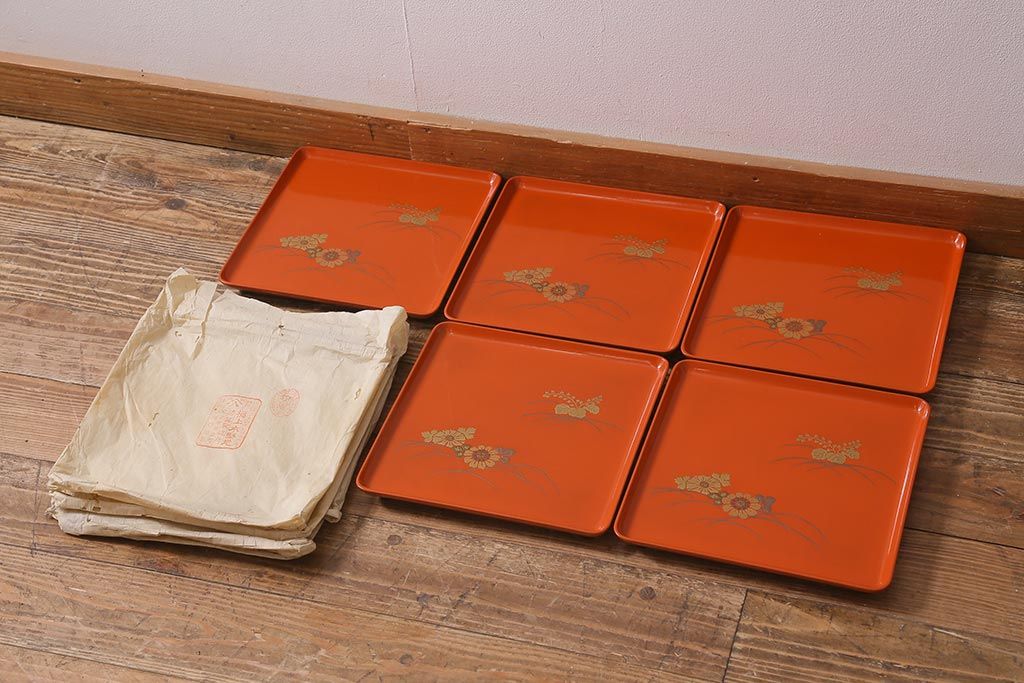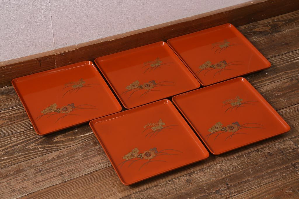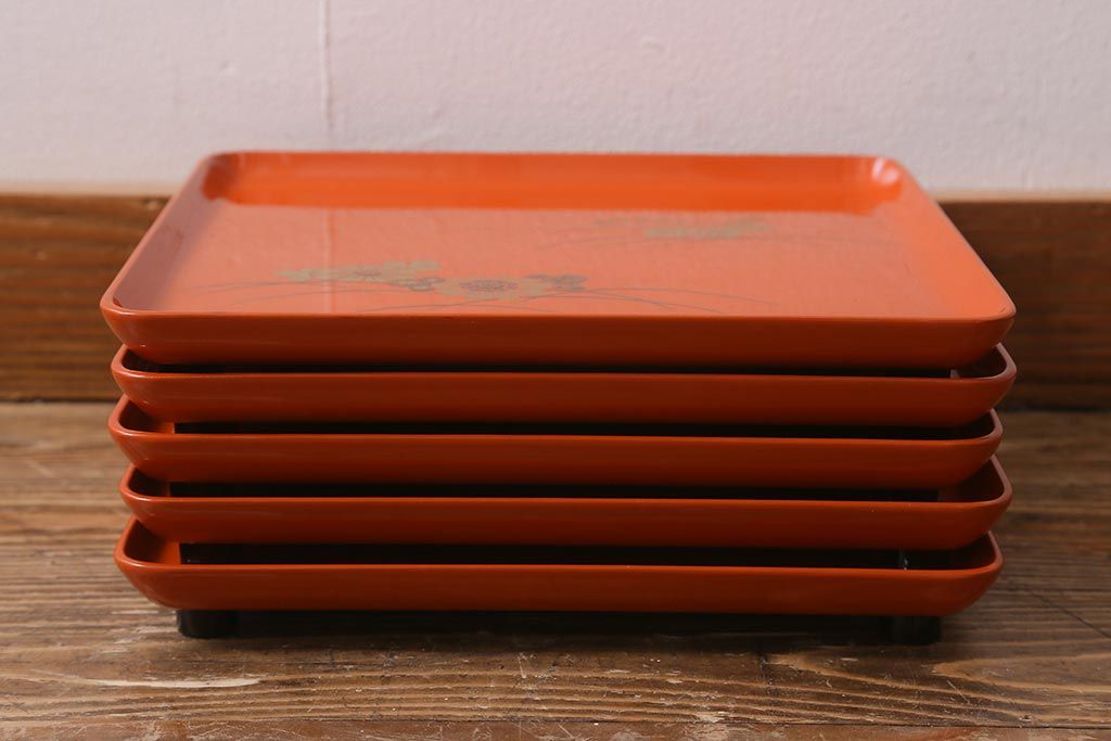 アンティーク雑貨 古民具・骨董 明治〜大正期 輪島塗木製蒔絵膳5枚セット(漆器、お盆)(R-040116)