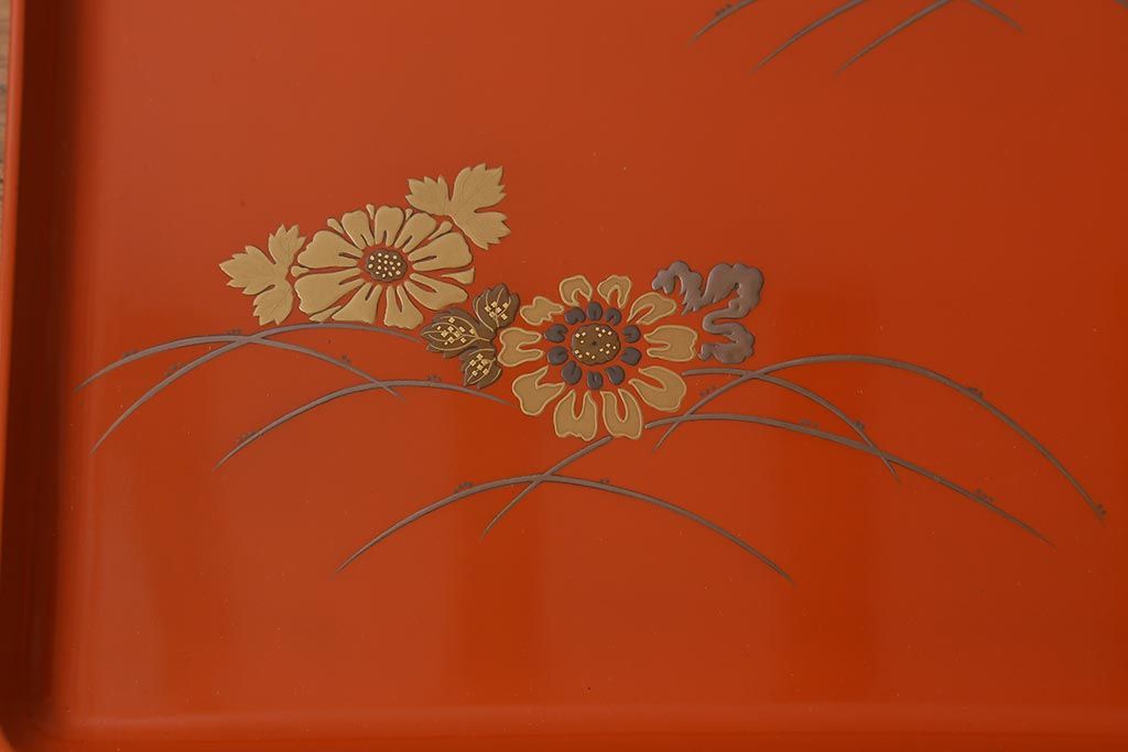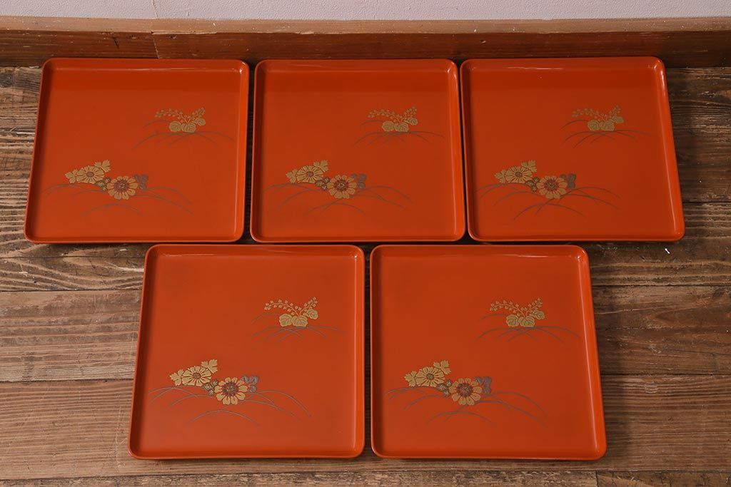 ラフジュ工房> 骨董・美術品> 骨董-漆器 > アンティーク雑貨 古民具・骨董 明治〜大正期 輪島塗木製蒔絵膳5枚セット(漆器、お盆)(R-040116)