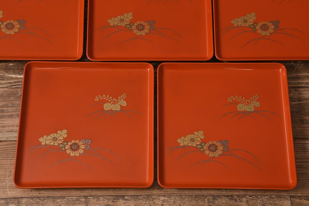 ラフジュ工房> 骨董・美術品 > アンティーク雑貨 古民具・骨董 明治〜大正期 輪島塗木製蒔絵膳5枚セット(漆器、お盆)(R-040116)