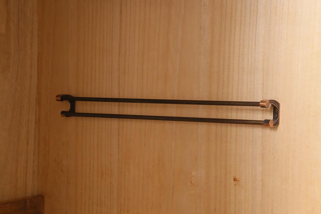 ラフジュ工房> ワードローブ・ロッカー> ワードローブ > ビンテージ家具 岩谷堂箪笥 銘入り「菊政」 手打ち金具 漆塗り 美しい杢目と重厚感のある金具が魅力的なワードローブ(洋服タンス)(R-040479)