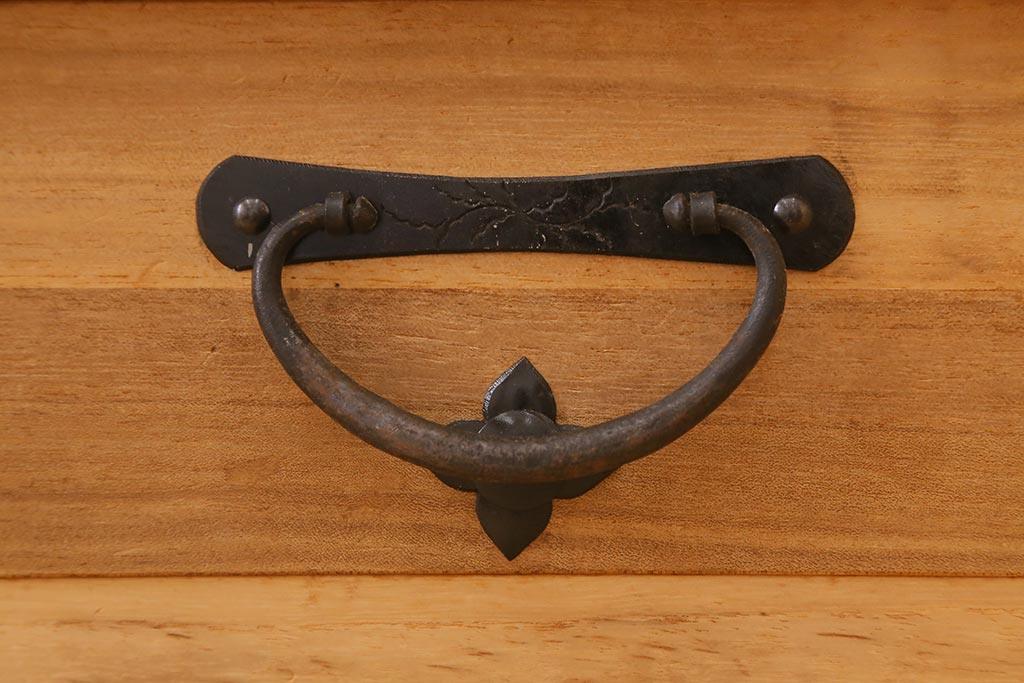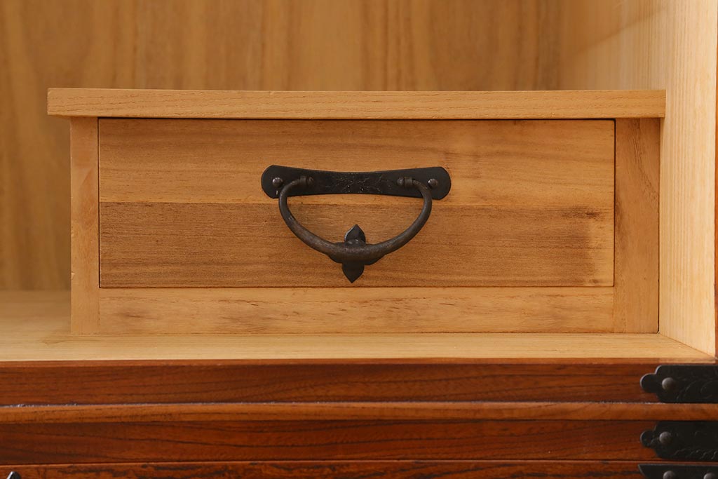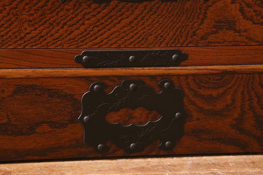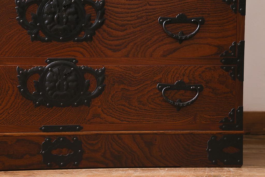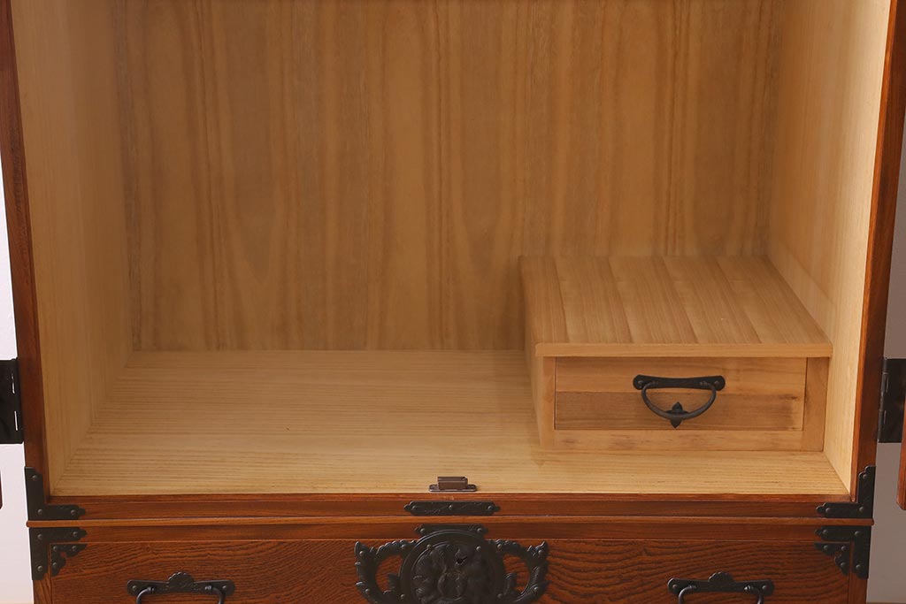 ラフジュ工房> 民芸家具 > ビンテージ家具 岩谷堂箪笥 銘入り「菊政」 手打ち金具 漆塗り 美しい杢目と重厚感のある金具が魅力的なワードローブ(洋服タンス)(R-040479)