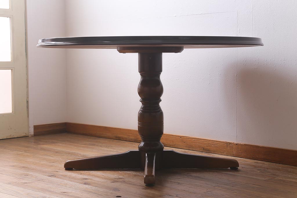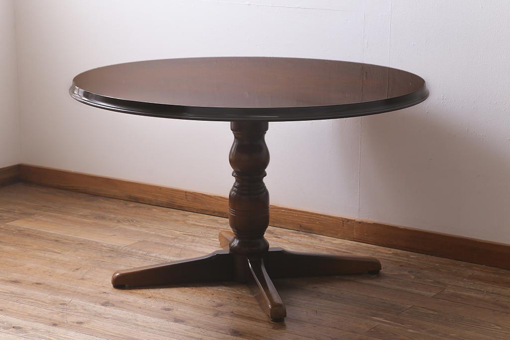 中古 ヴィンテージ家具 飛騨産業 穂高シリーズ キツツキマーク 洗練された佇まいが魅力的な丸テーブル(ダイニングテーブル、カフェテーブル、ラウンドテーブル)(R-040642)です。