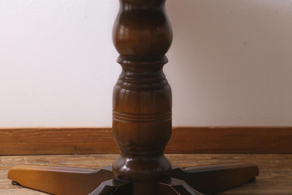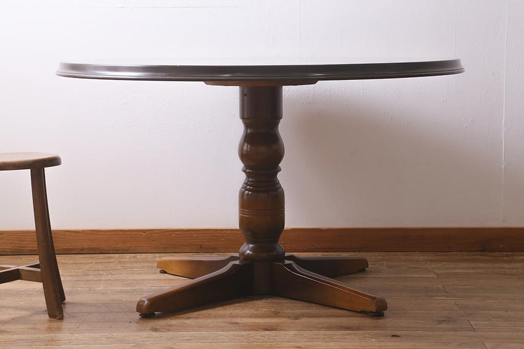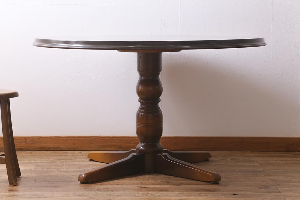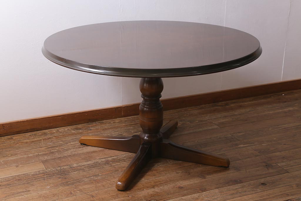 中古 ヴィンテージ家具 飛騨産業 穂高シリーズ キツツキマーク 洗練された佇まいが魅力的な丸テーブル(ダイニングテーブル、カフェテーブル、ラウンドテーブル、ビンテージ)(R-040642)