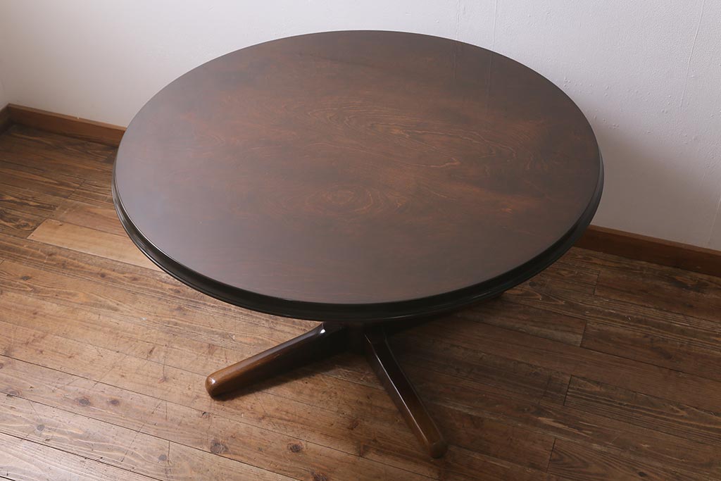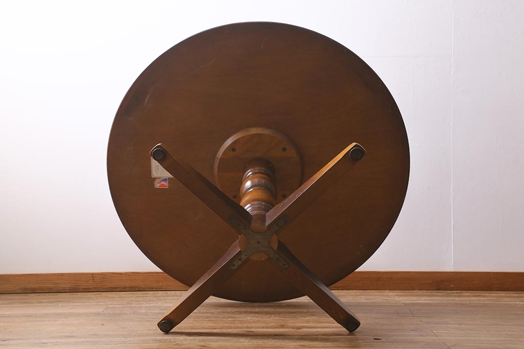 テーブル> 丸テーブル > 中古 ヴィンテージ家具 飛騨産業 穂高シリーズ キツツキマーク 洗練された佇まいが魅力的な丸テーブル(ダイニングテーブル、カフェテーブル、ラウンドテーブル、ビンテージ)(R-040642)