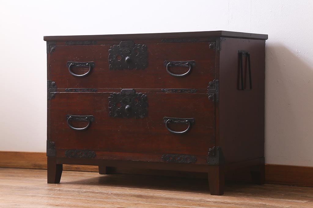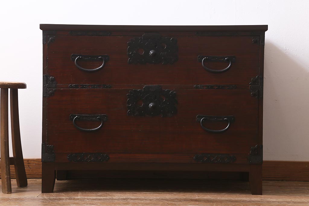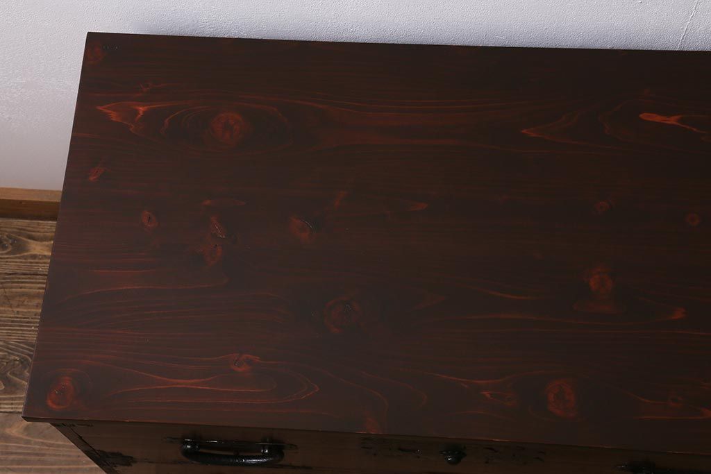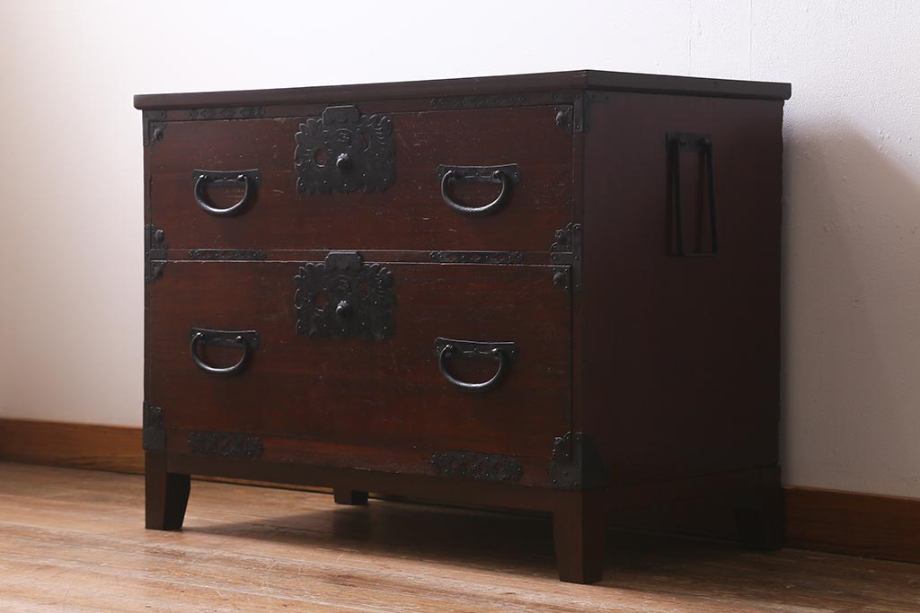 和箪笥> 衣装箪笥 > アンティーク家具 和製アンティーク リメイク 漆塗り 味わい深い佇まいがおしゃれな脚付き箪笥ローボード(時代箪笥、テレビ台、チェスト)(R-040648)