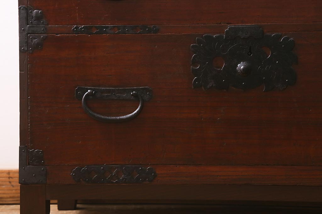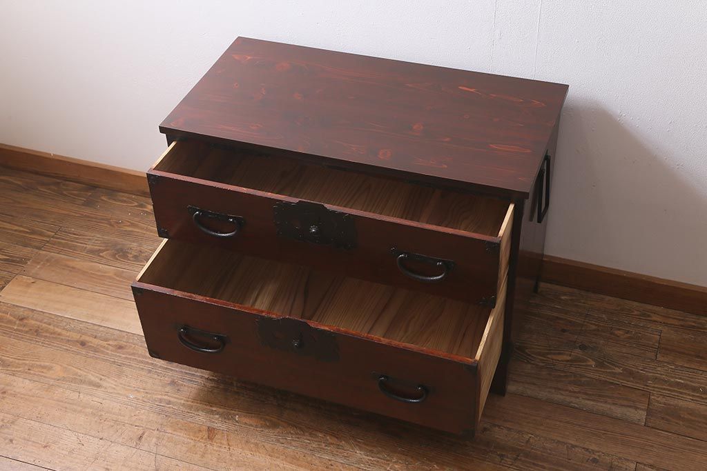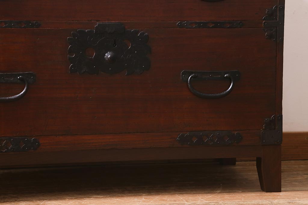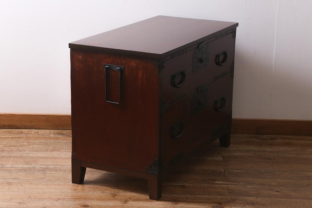 和箪笥 > アンティーク家具 和製アンティーク リメイク 漆塗り 味わい深い佇まいがおしゃれな脚付き箪笥ローボード(時代箪笥、テレビ台、チェスト)(R-040648)