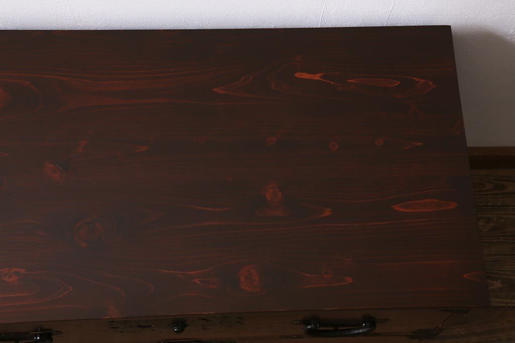 キャビネット・戸棚> テレビ台・ローボード > アンティーク家具 和製アンティーク リメイク 漆塗り 味わい深い佇まいがおしゃれな脚付き箪笥ローボード(時代箪笥、テレビ台、チェスト)(R-040648)