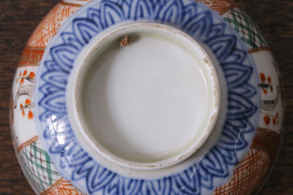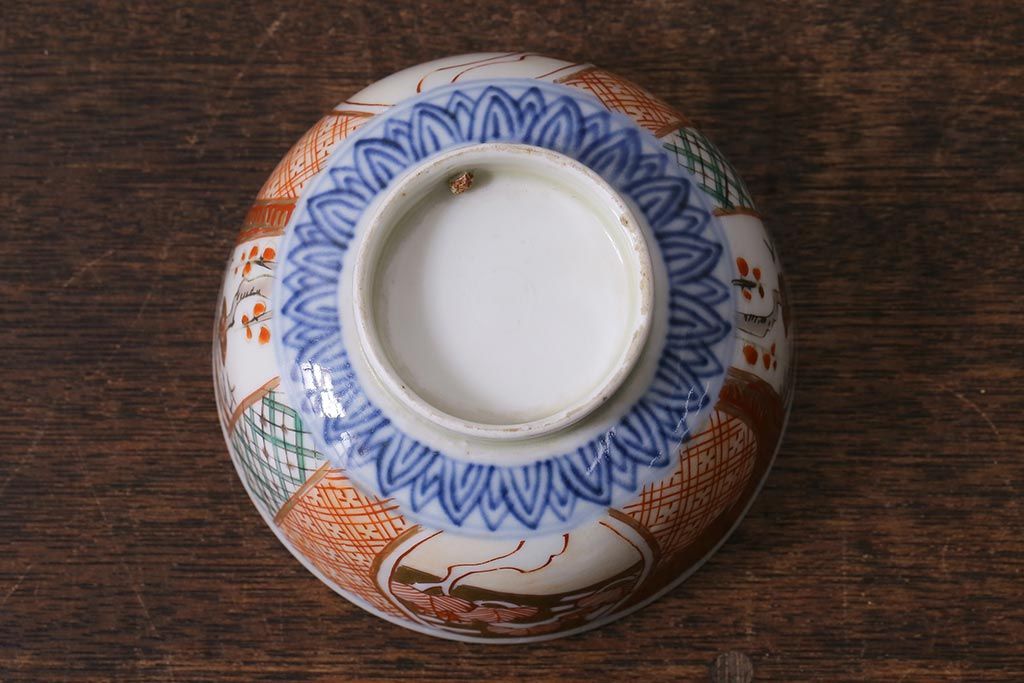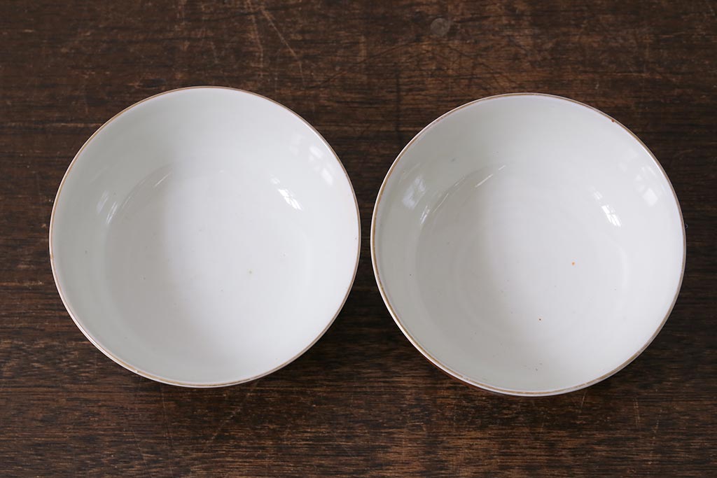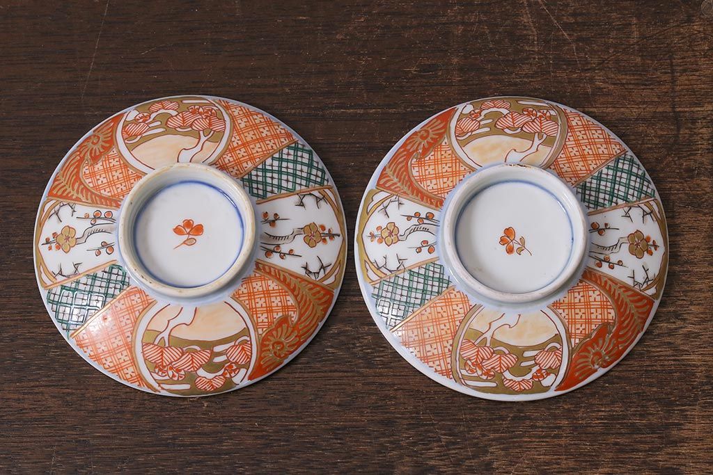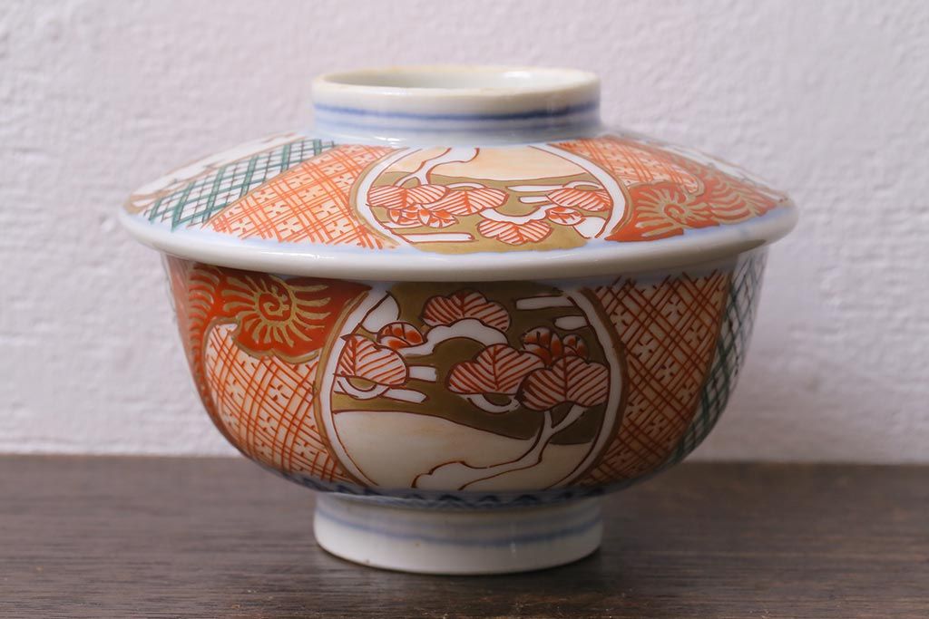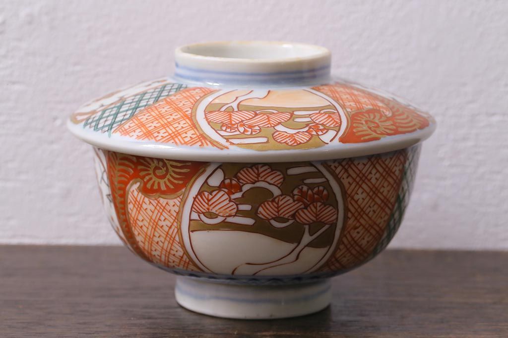アンティーク雑貨 幕末明治期 伊万里焼 色絵蓋茶碗2客セット(蓋付茶碗、和食器)(R-040573)