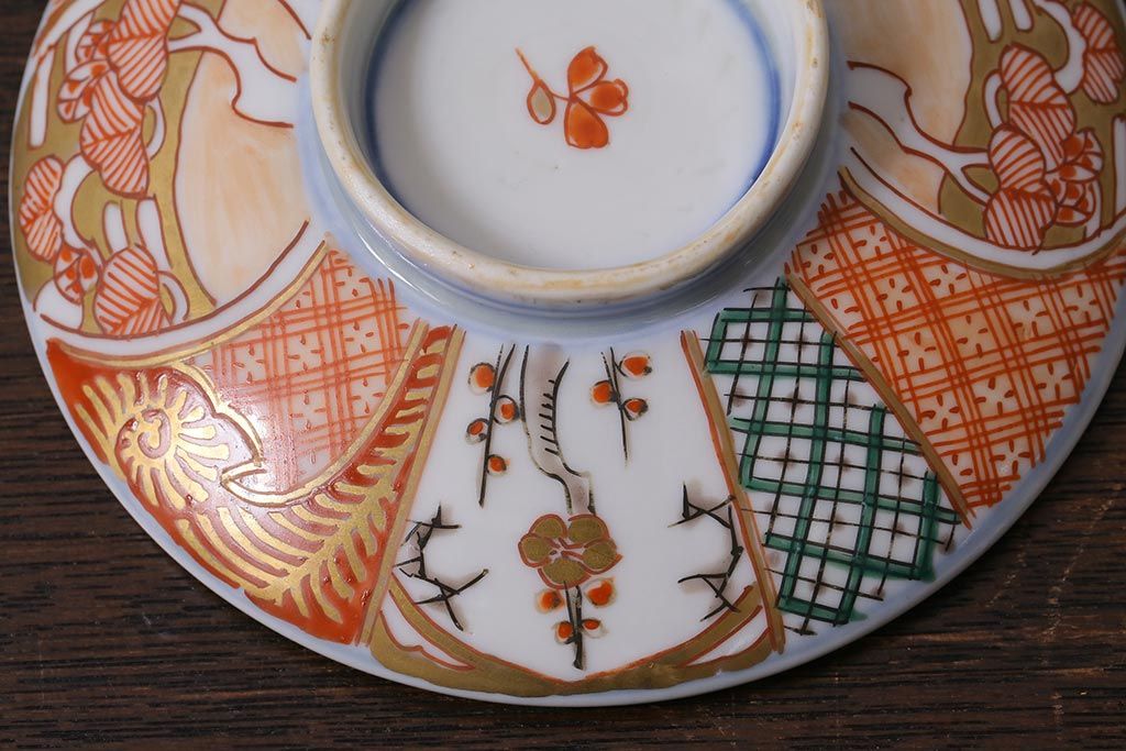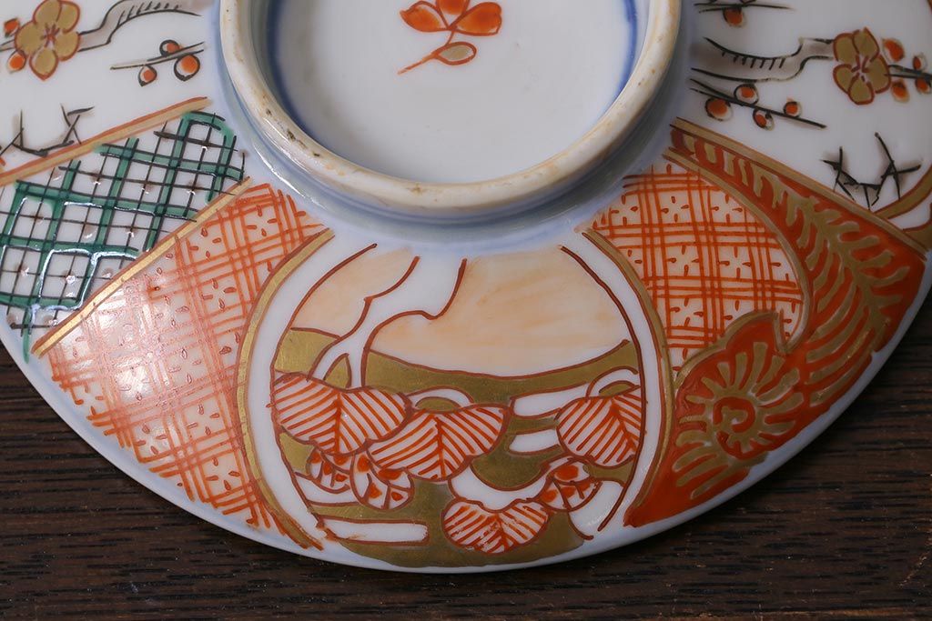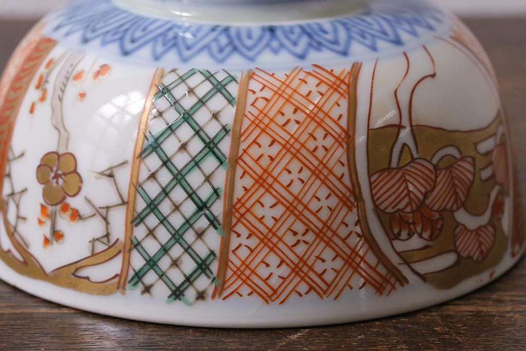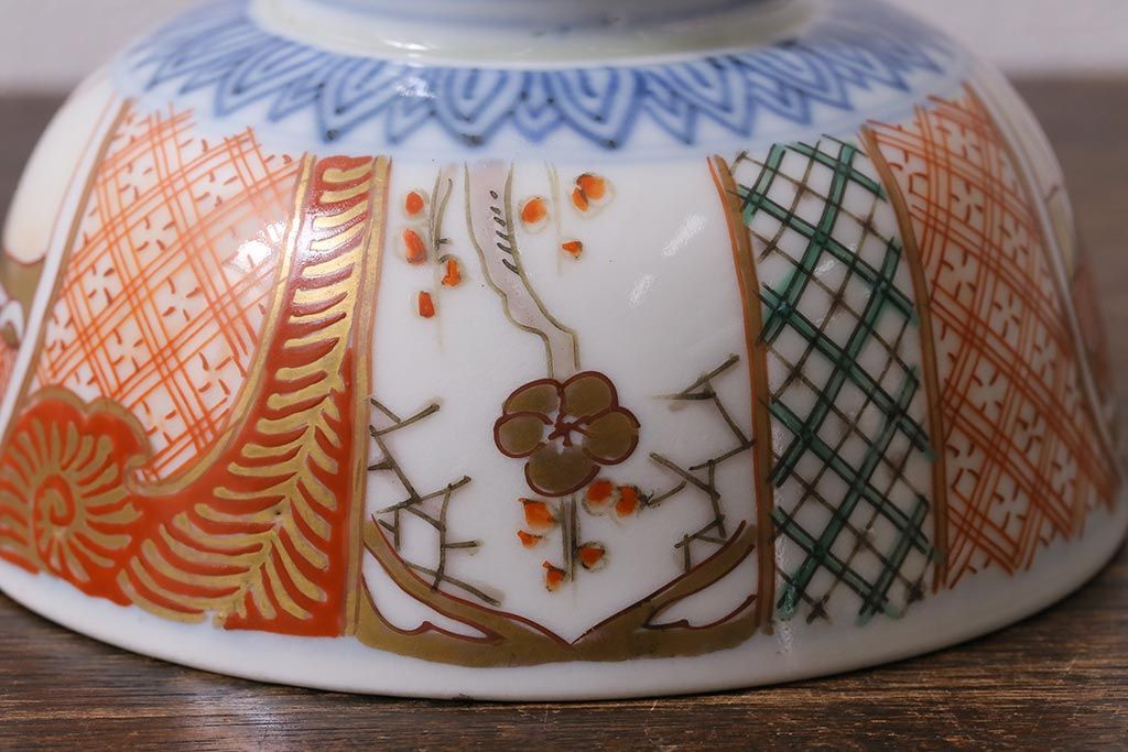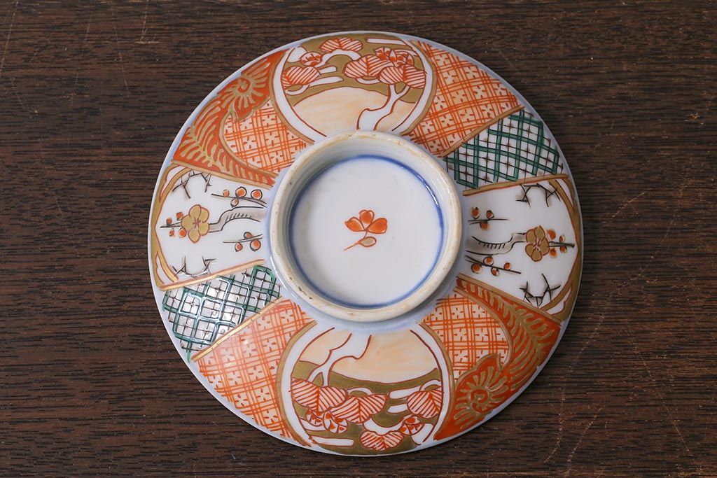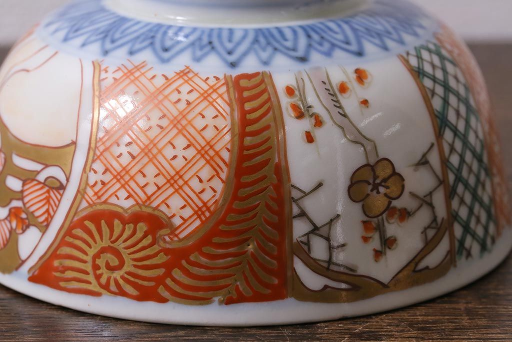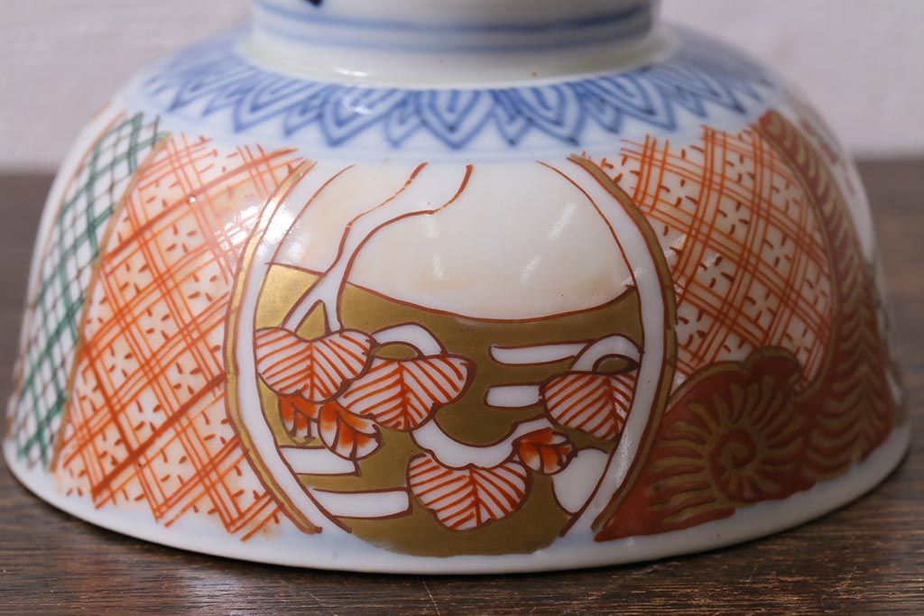 アンティーク雑貨 幕末明治期 伊万里焼 色絵蓋茶碗2客セット(蓋付茶碗、和食器)(R-040573)