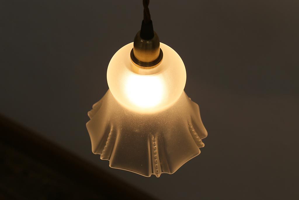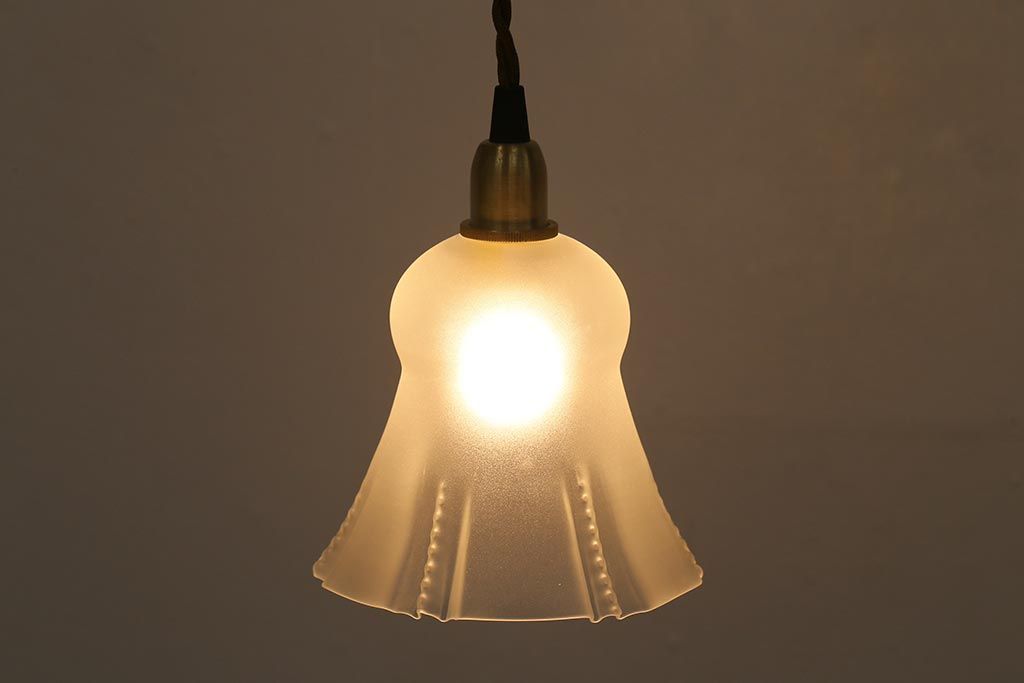 ヴィンテージ照明 イギリスビンテージ フロストガラス 小振りで可愛いペンダントライト(シェード、天井照明)(R-040812)です。