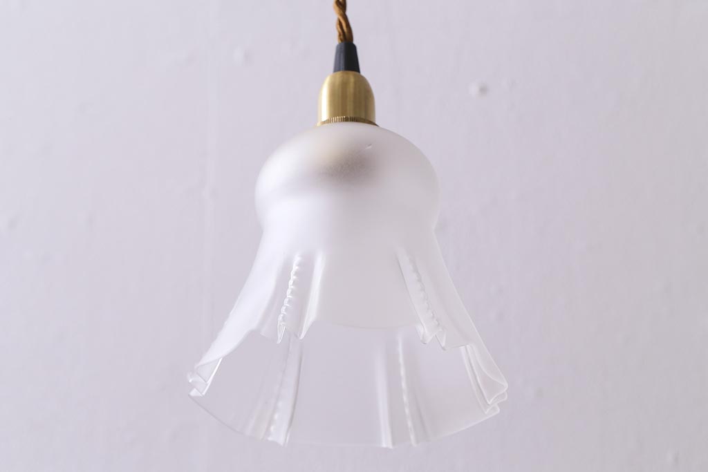 ヴィンテージ照明 イギリスビンテージ フロストガラス 小振りで可愛いペンダントライト(シェード、天井照明)(R-040812)