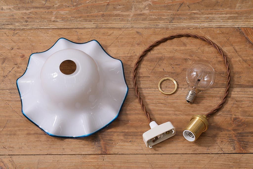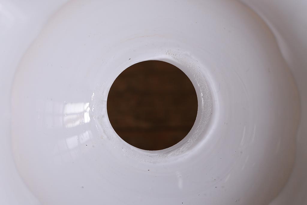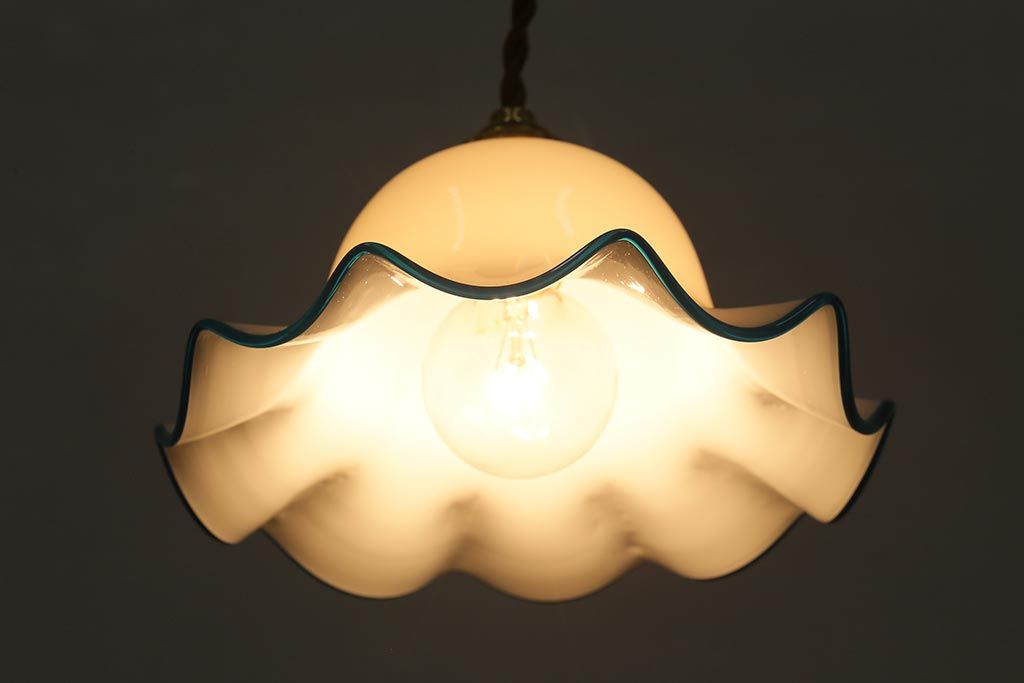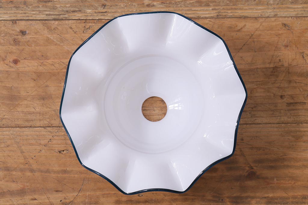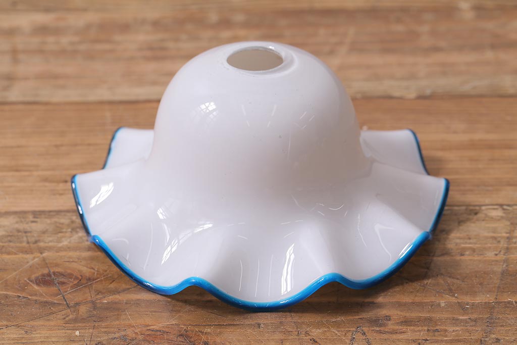 ヴィンテージ照明 イギリスビンテージ 水色縁フリルのミルクガラスペンダントライト(ランプシェード、天井照明)(R-040805)