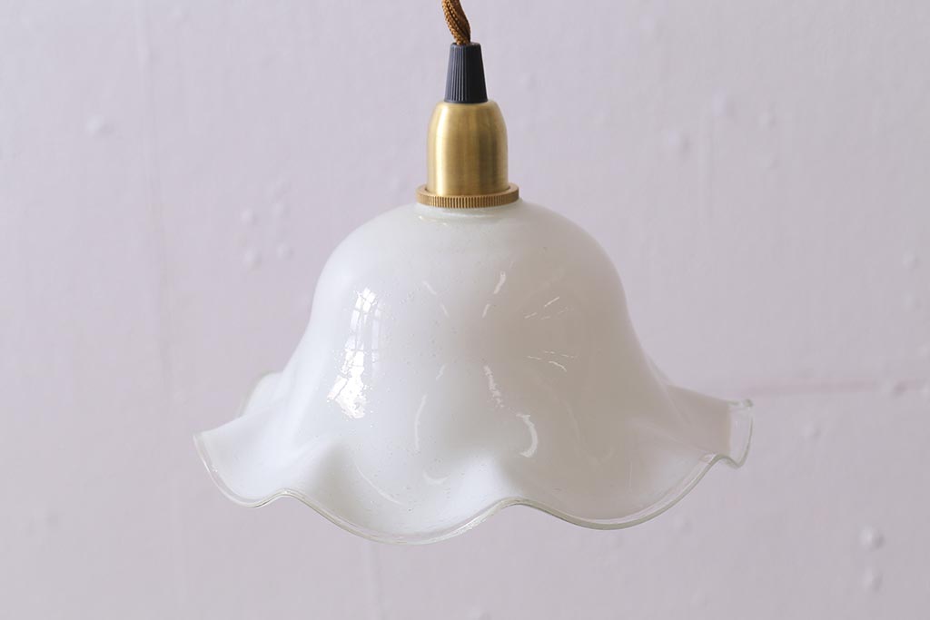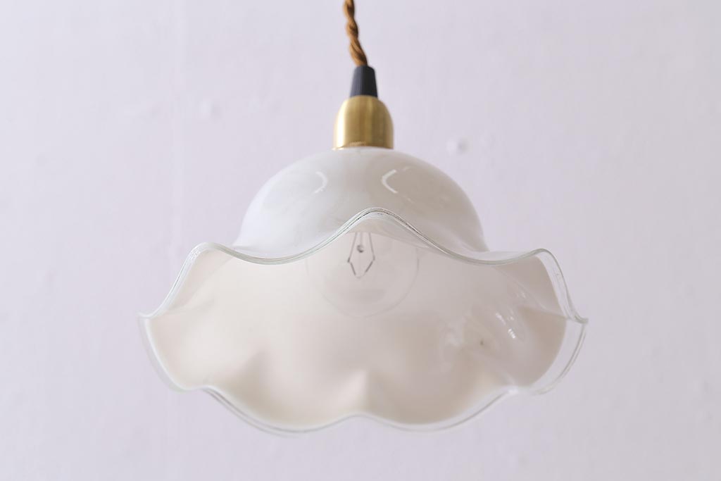 イギリスヴィンテージ照明 上品なフリルシェードのペンダントライト(ランプシェード、天井照明)(R-040800)です。