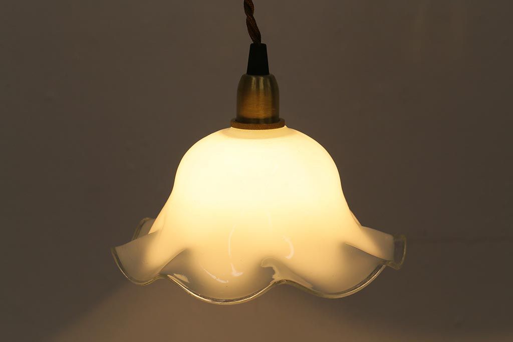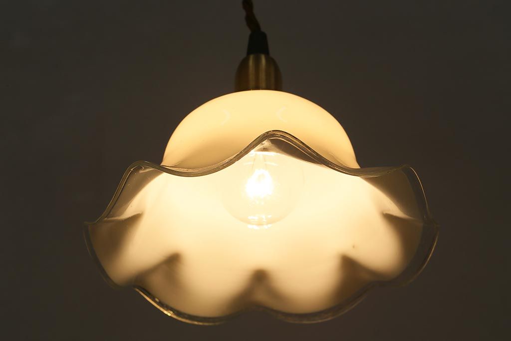 イギリスヴィンテージ照明 上品なフリルシェードのペンダントライト(ランプシェード、天井照明、ビンテージ)(R-040800)