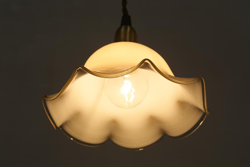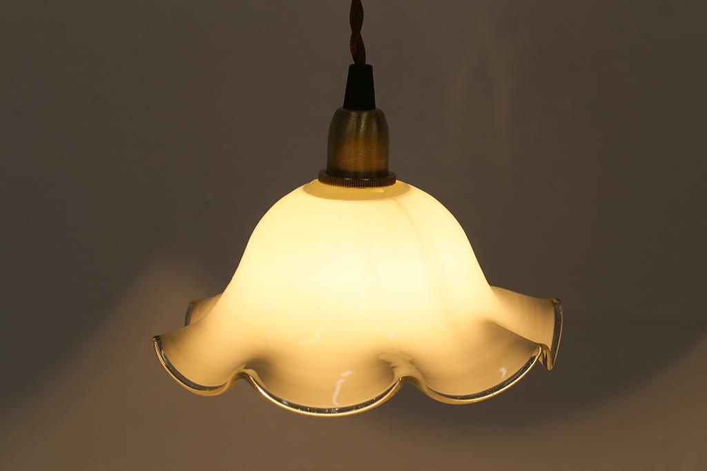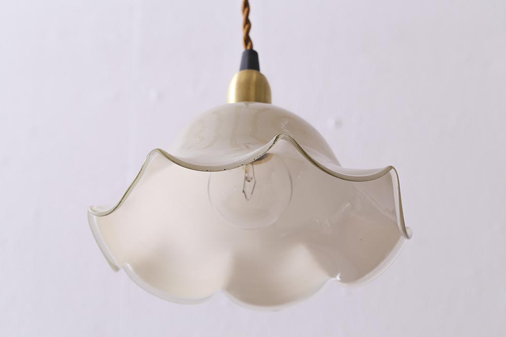 イギリスヴィンテージ照明 上品なフリルシェードのペンダントライト(ランプシェード、天井照明、ビンテージ)(R-040802)