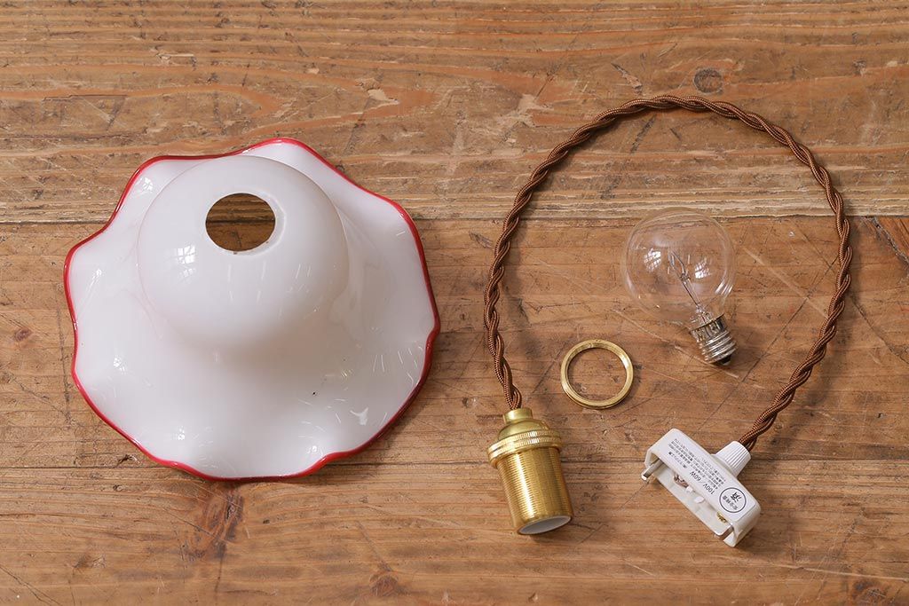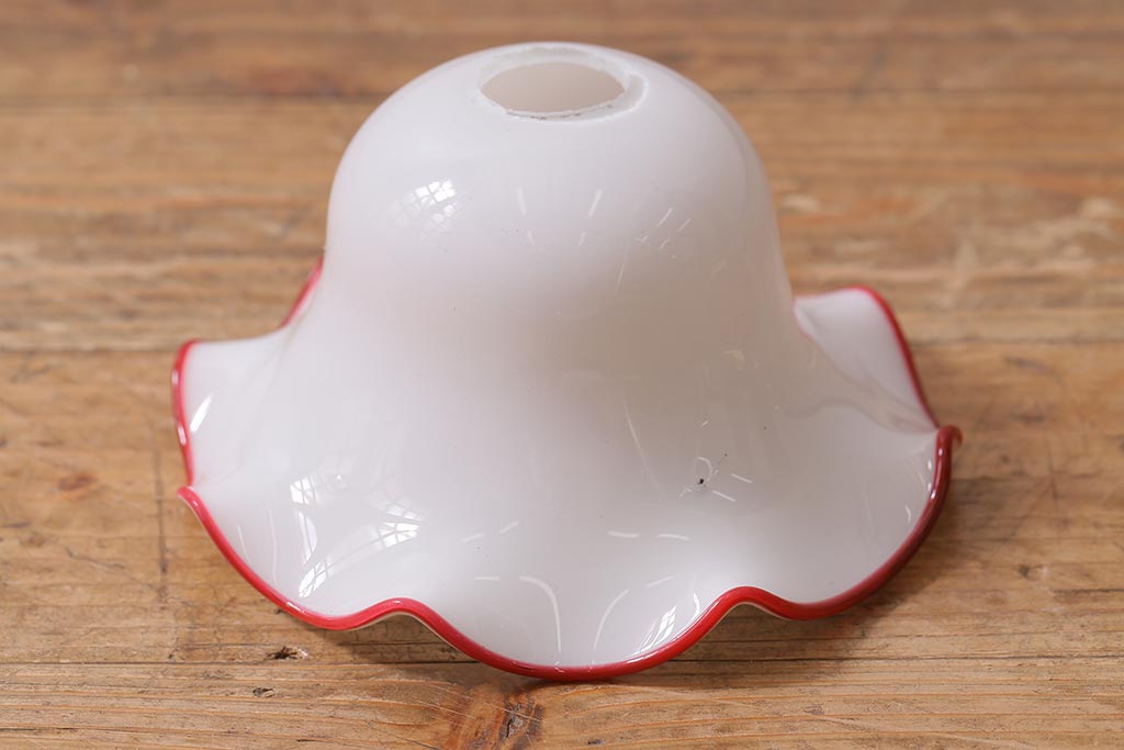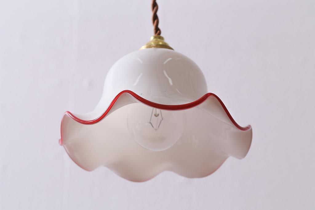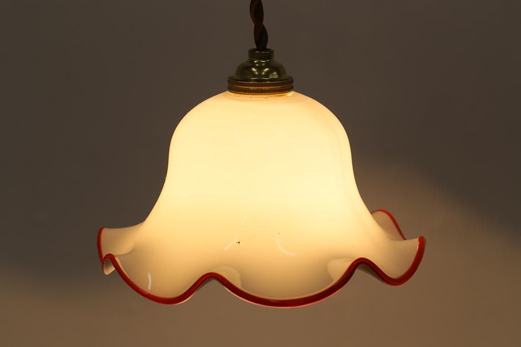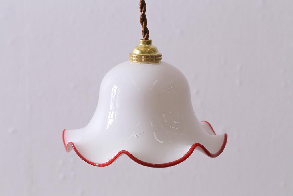 ヴィンテージ照明 イギリスビンテージ 小振りな赤縁フリルのミルクガラスペンダントライト(ランプシェード、天井照明)(R-040808)です。