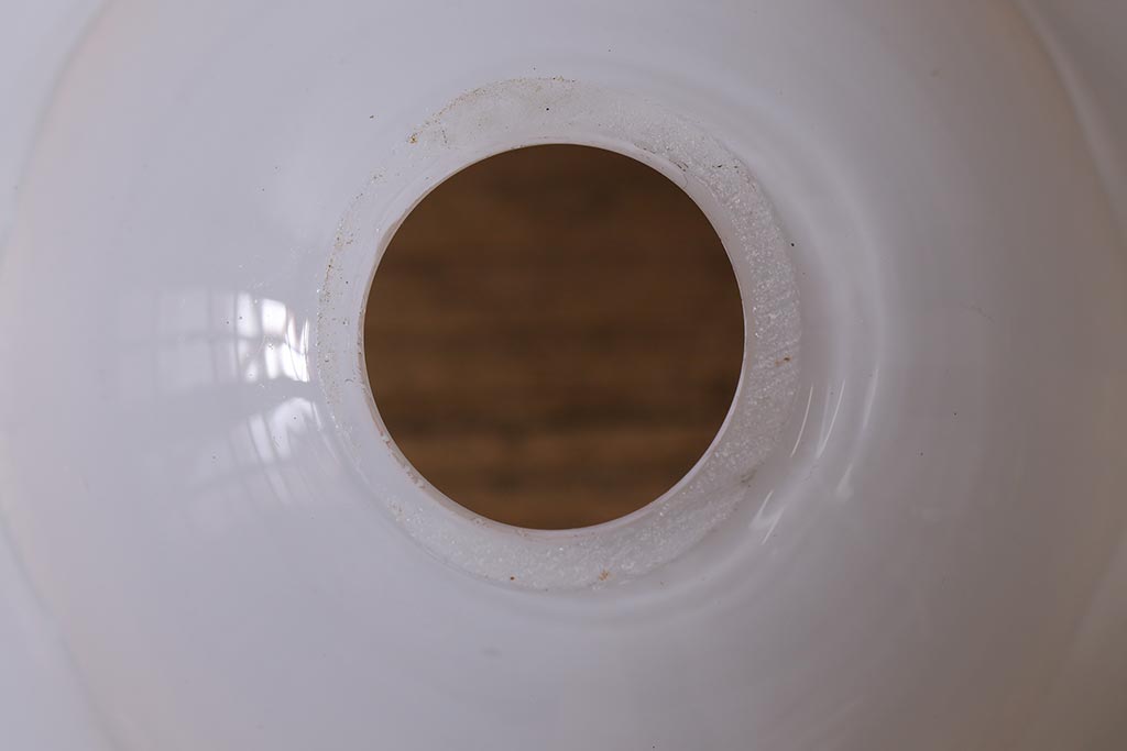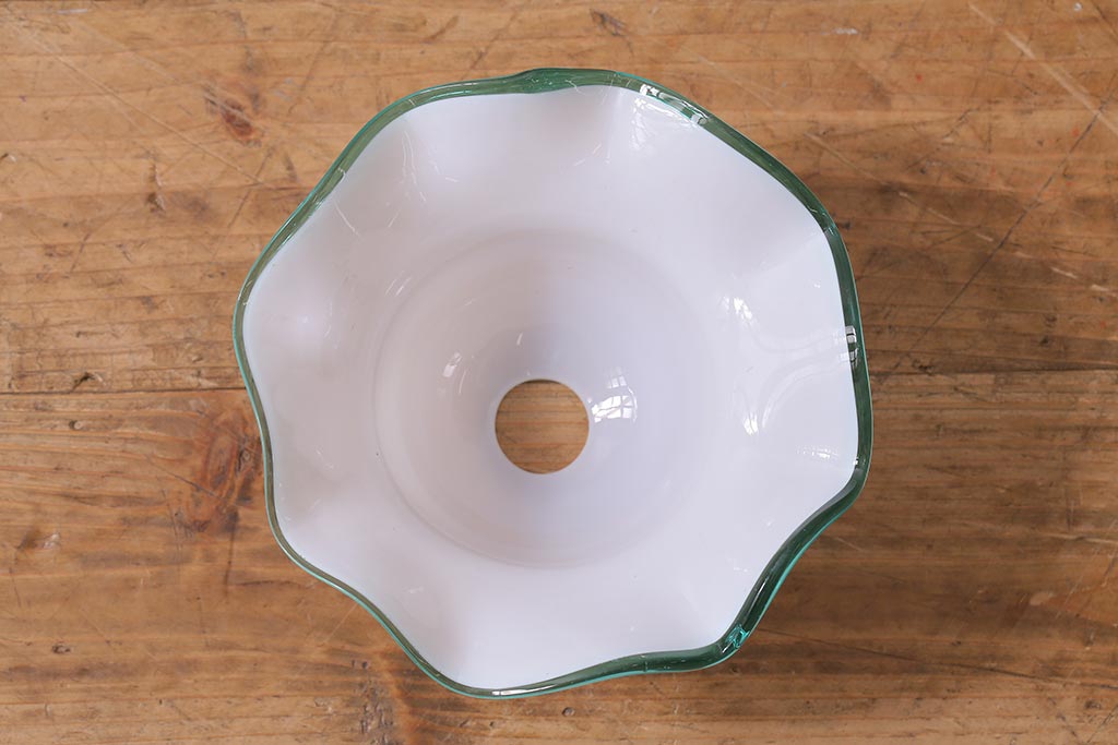 ヴィンテージ照明 イギリスビンテージ 小振りな水色縁フリルのミルクガラスペンダントライト(ランプシェード、天井照明)(R-040809)です。