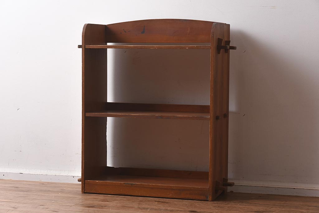 アンティーク家具 和製アンティーク 昭和初期 明るい木色が懐かしさ感じる楔(くさび)式本棚(オープンラック、ブックシェルフ、収納棚、飾り棚)(R-040663)