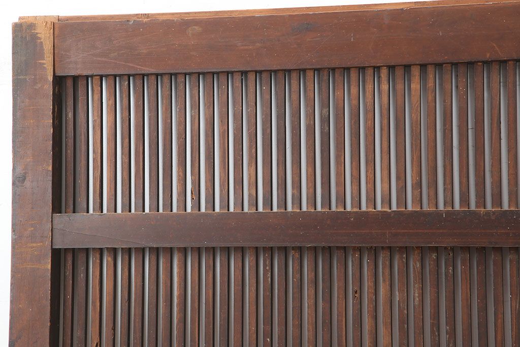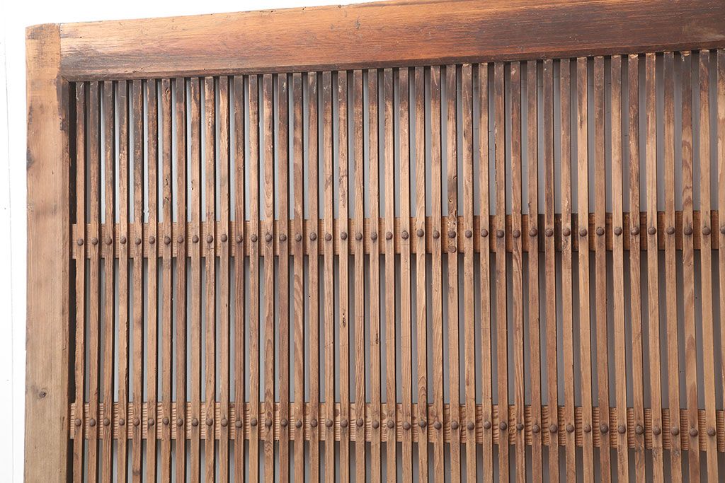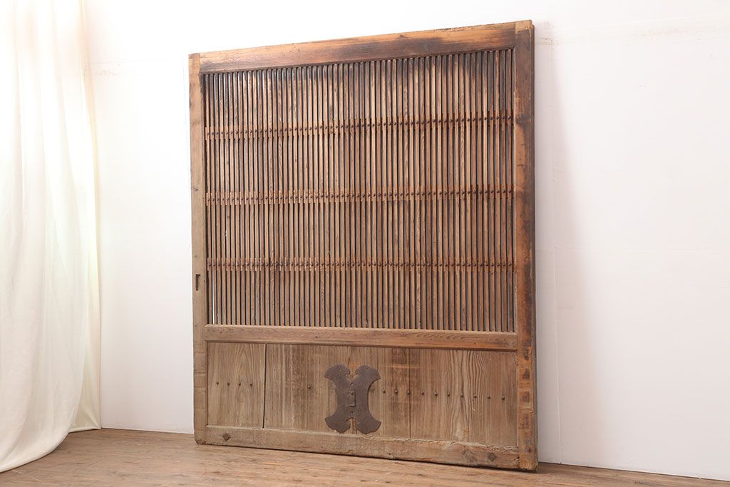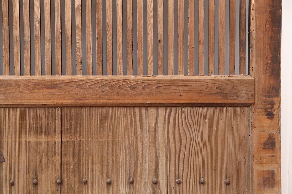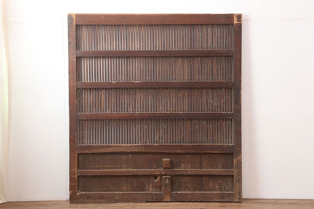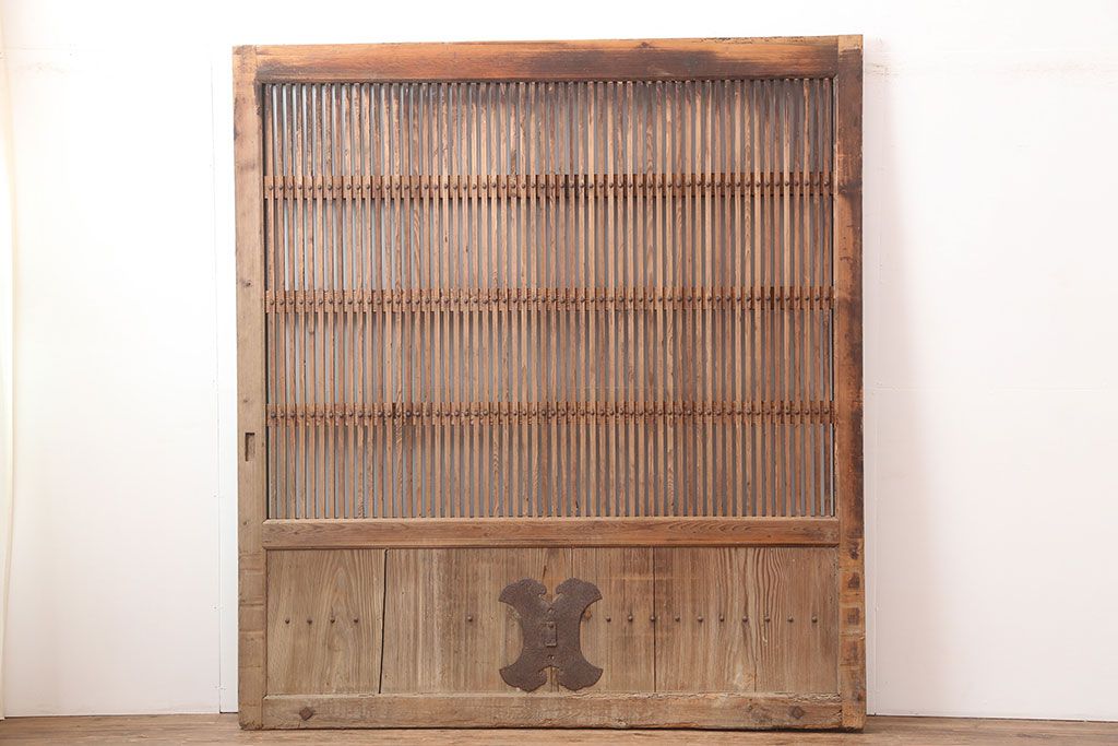アンティーク建具 和製アンティーク ヒノキ材 風格漂う格子蔵戸(玄関戸、引き戸)(R-040430)