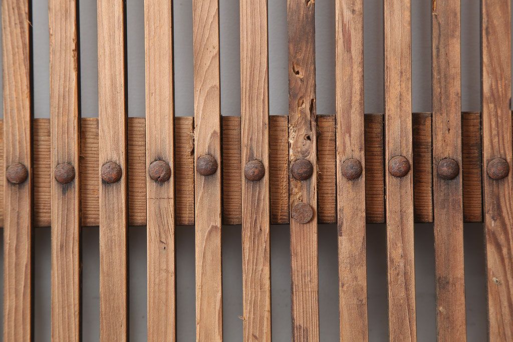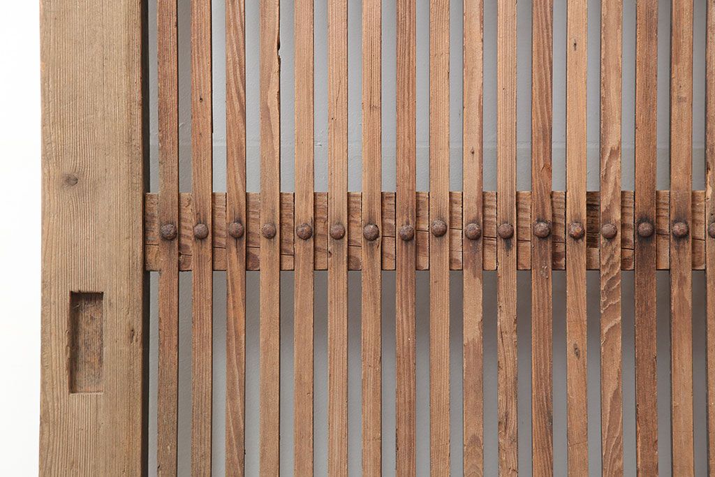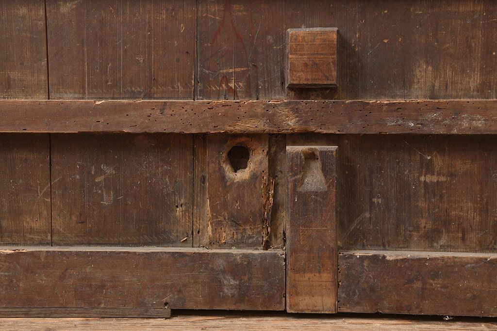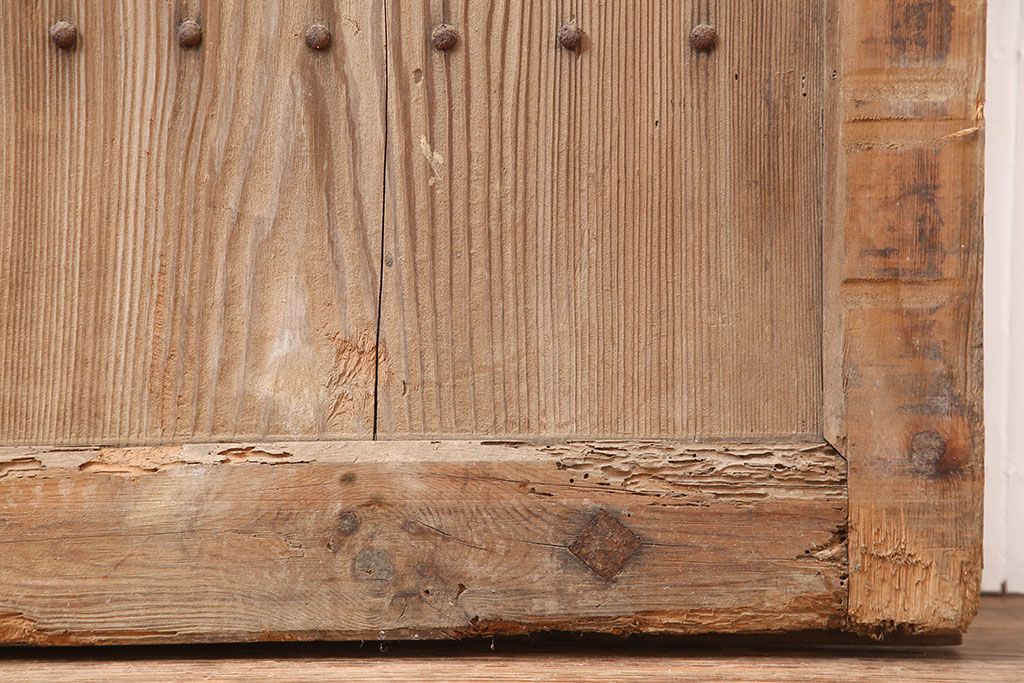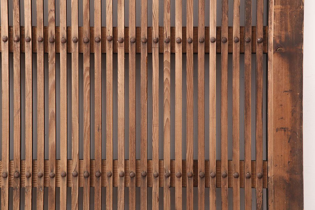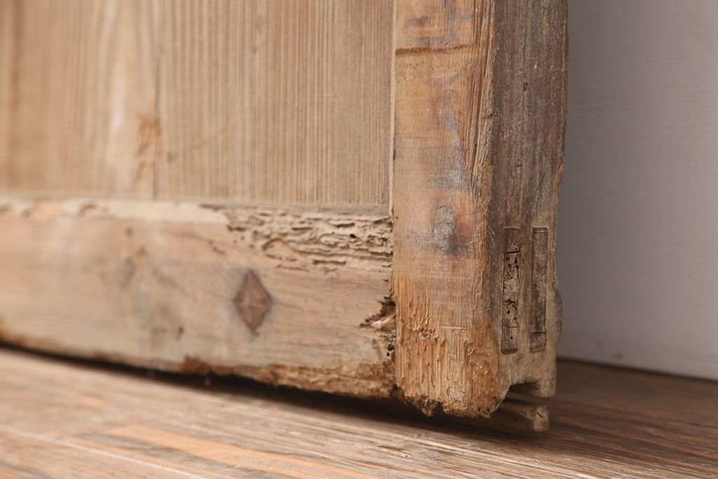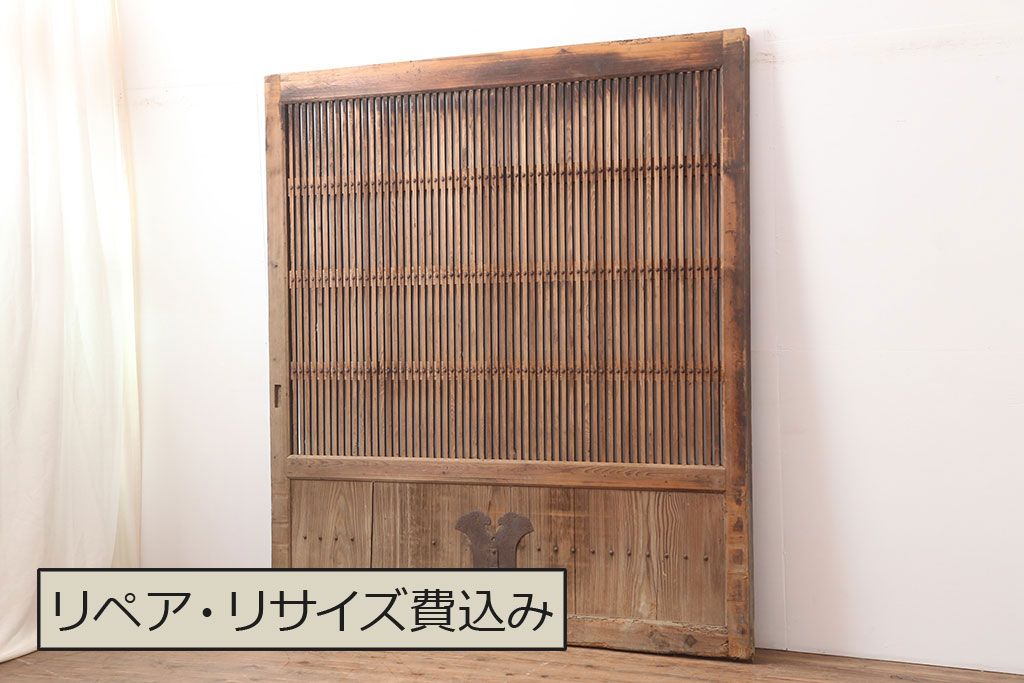 アンティーク建具 和製アンティーク ヒノキ材 風格漂う格子蔵戸(玄関戸、引き戸)(R-040430)