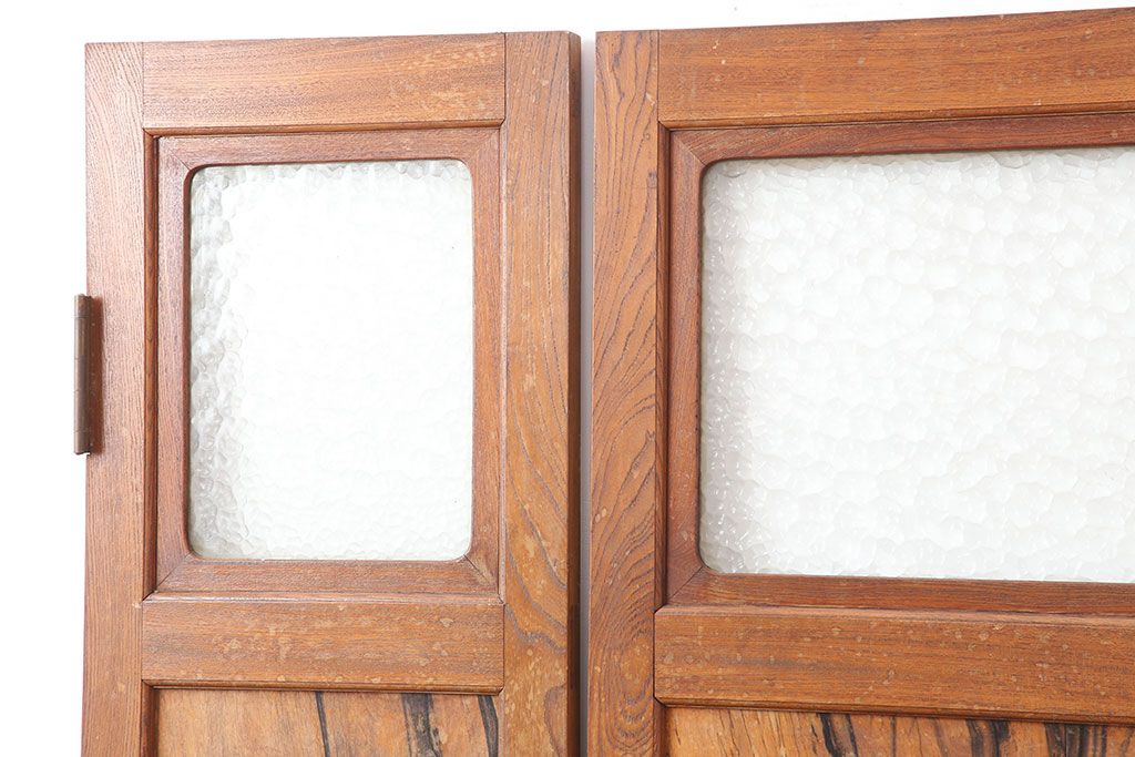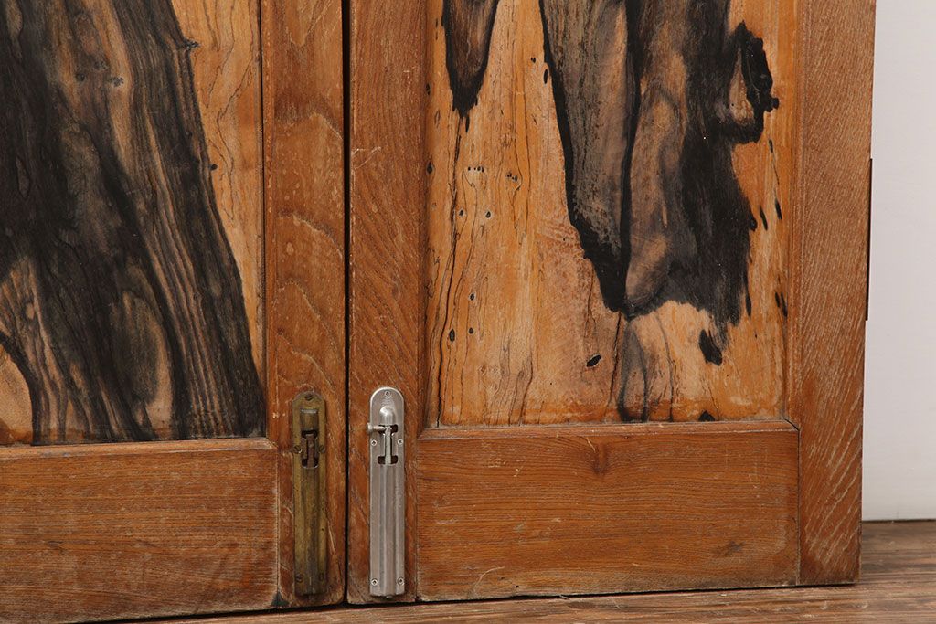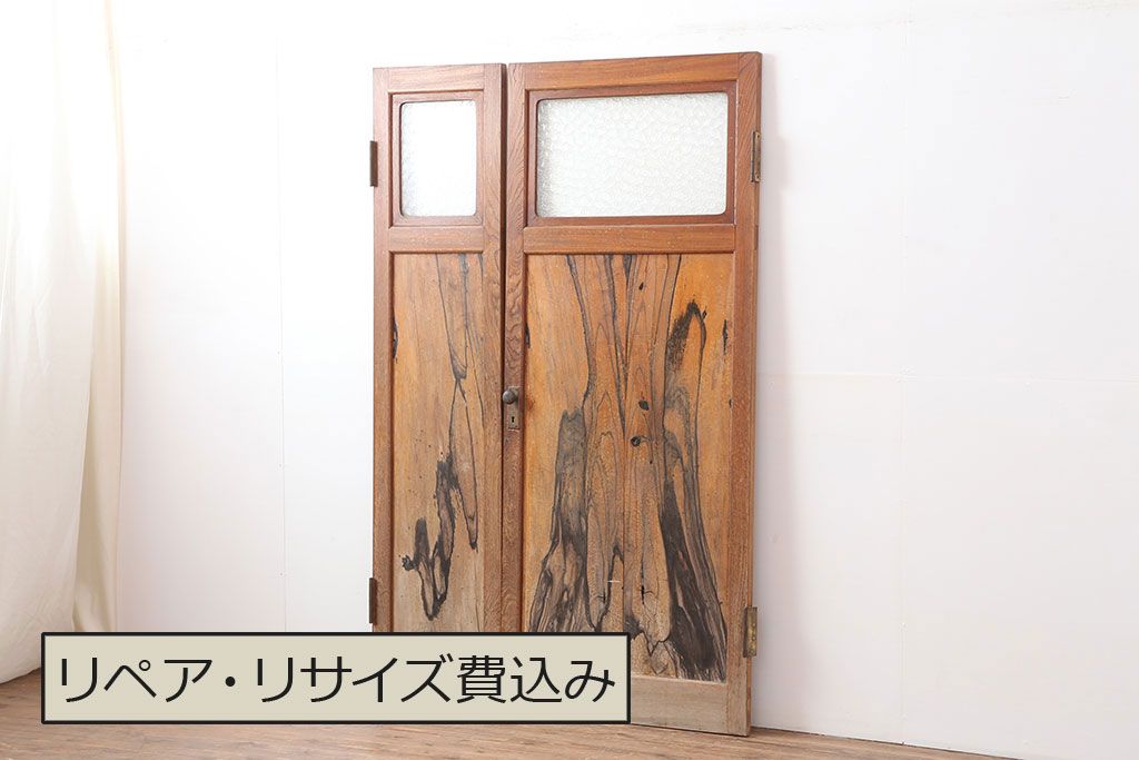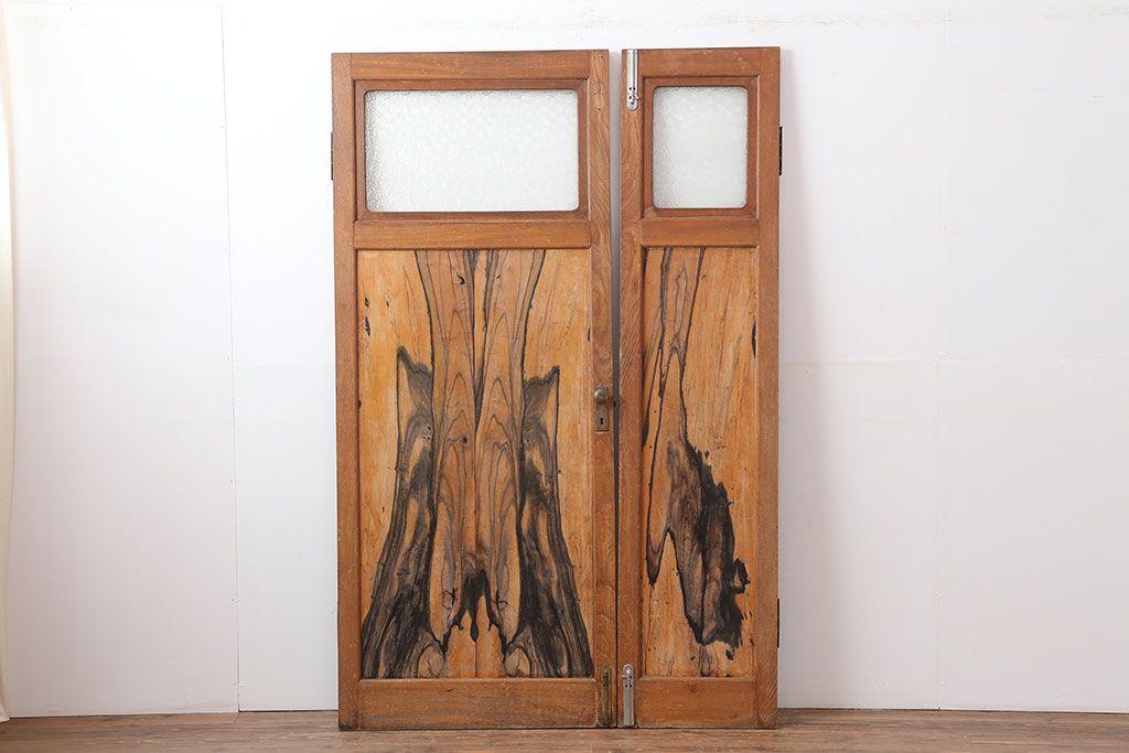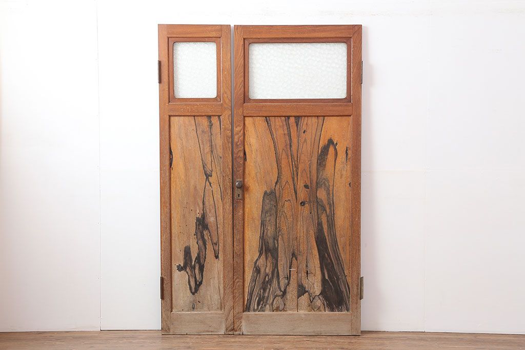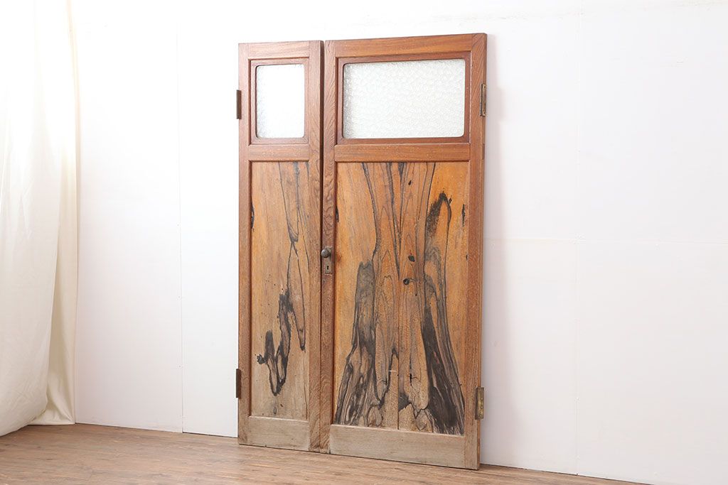 ドア・建具> 2枚・3枚セット > アンティーク家具 和製アンティーク 昭和初期 両開き 激レア!黒柿無垢材が用いられた存在感のある親子ドア1対(木製ドア、扉)(R-040726)
