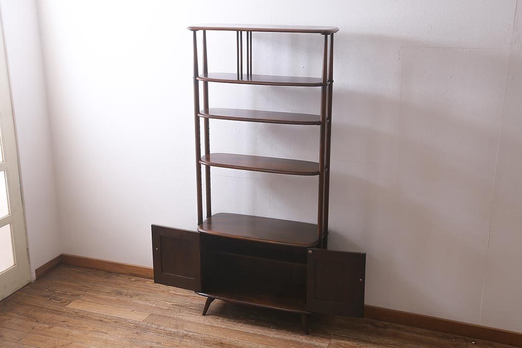 ヴィンテージ家具 イギリスビンテージ ERCOL(アーコール) 落ち着いた木色のルームディバイダー(飾り棚、ラック)(R-040682)