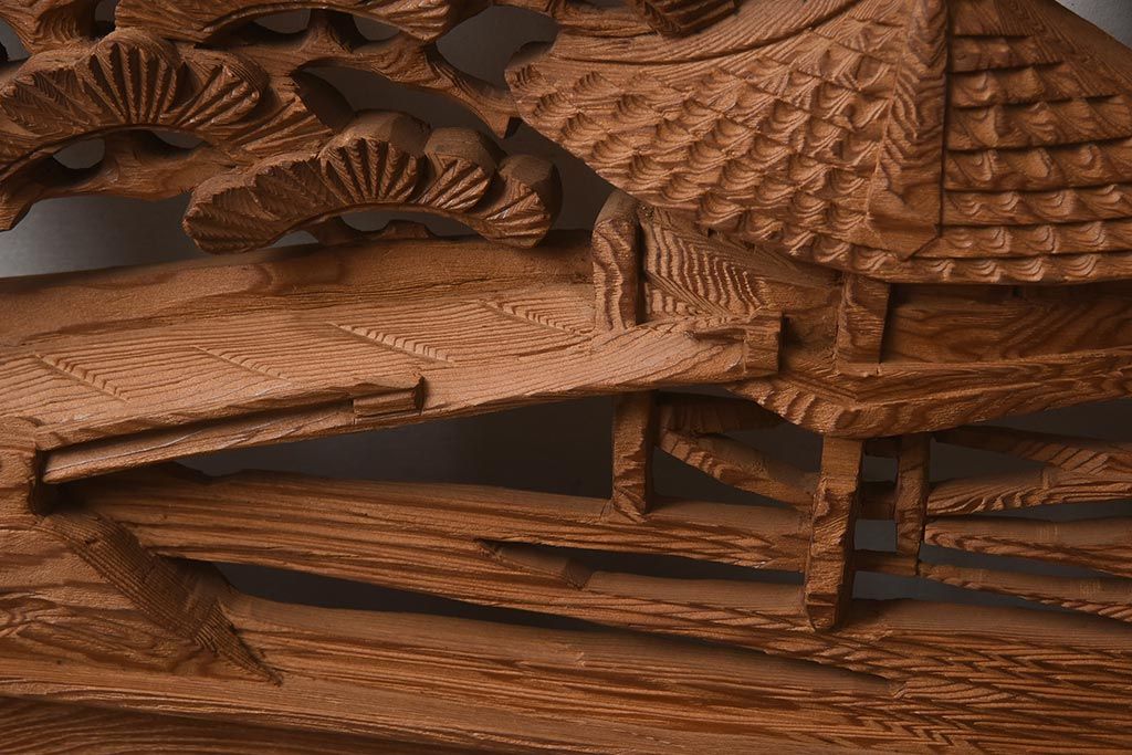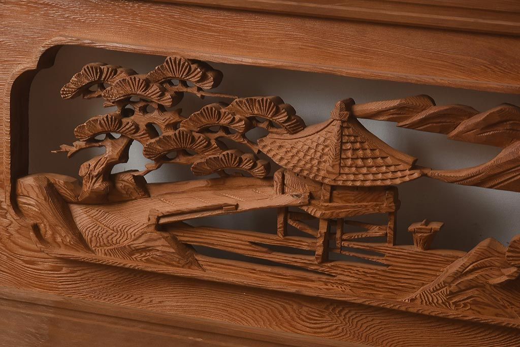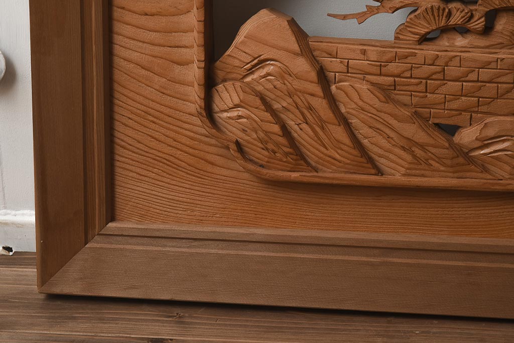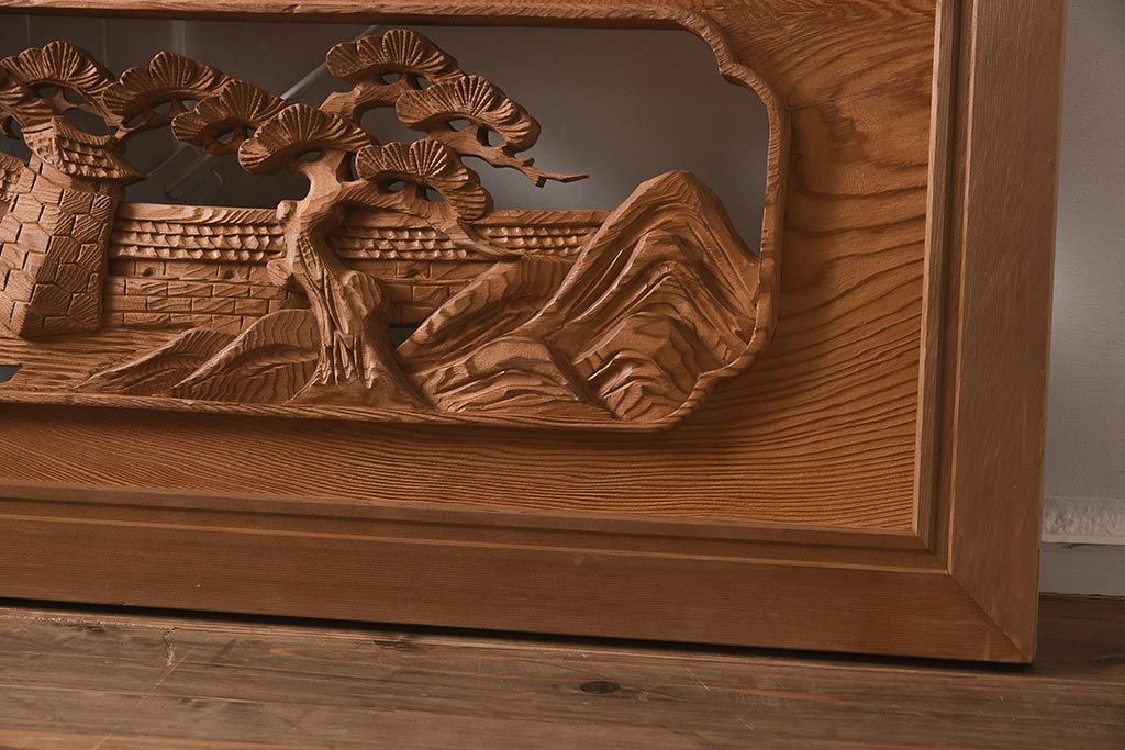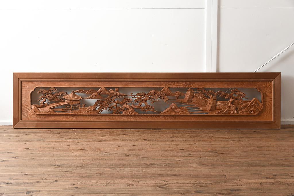 ビンテージ家具 昭和中期 近江八景 情緒溢れる彫刻欄間(明り取り、明かり取り、ガラス無し)(R-040657)